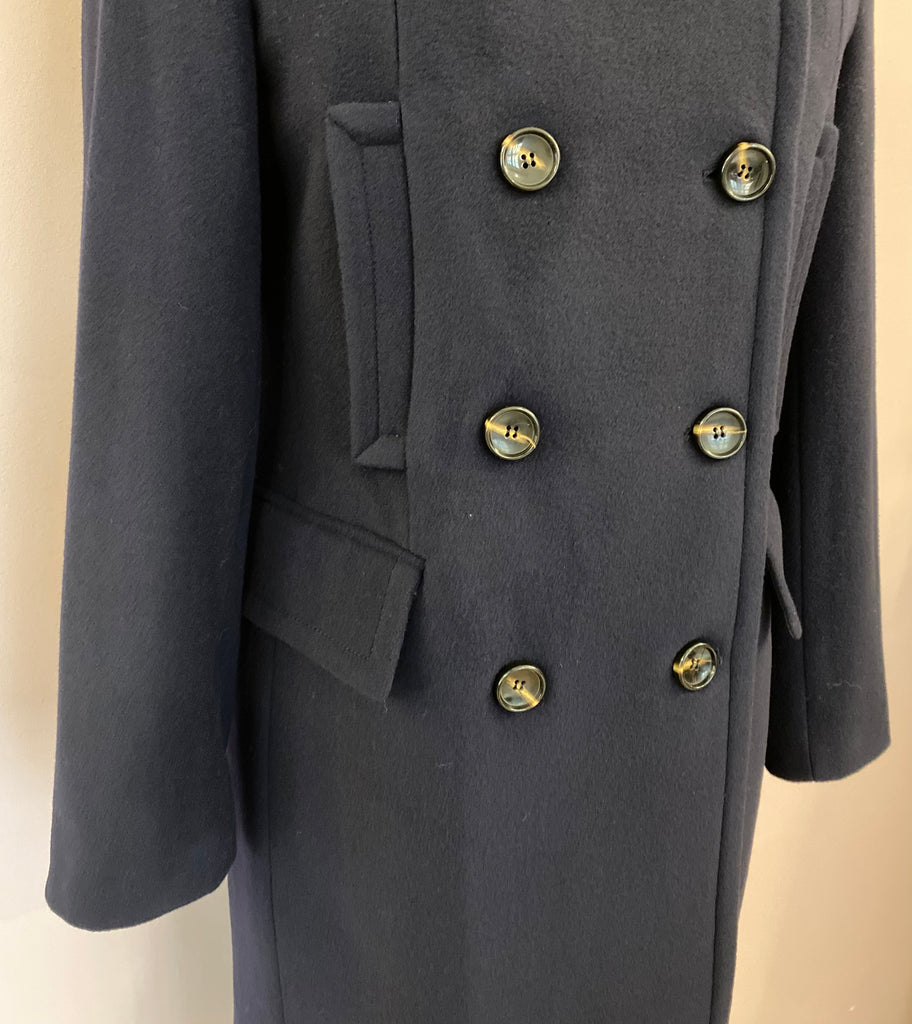 Dieser klassische Paletot, auch als Blazermantel bekannt, überzeugt mit einer eleganten, zweireihigen Knopfleiste und zahlreichen stilvollen Details.