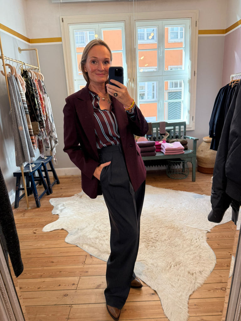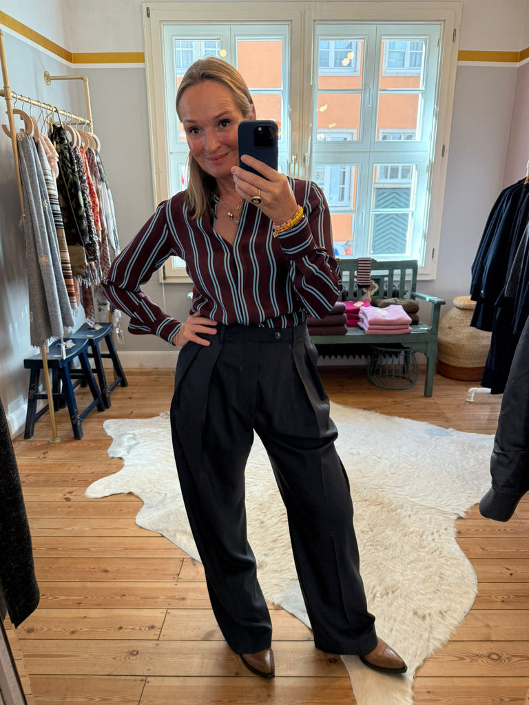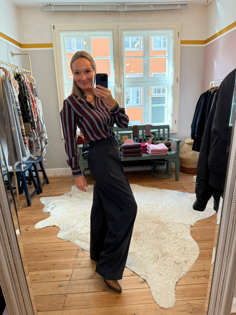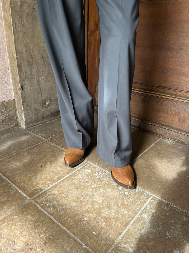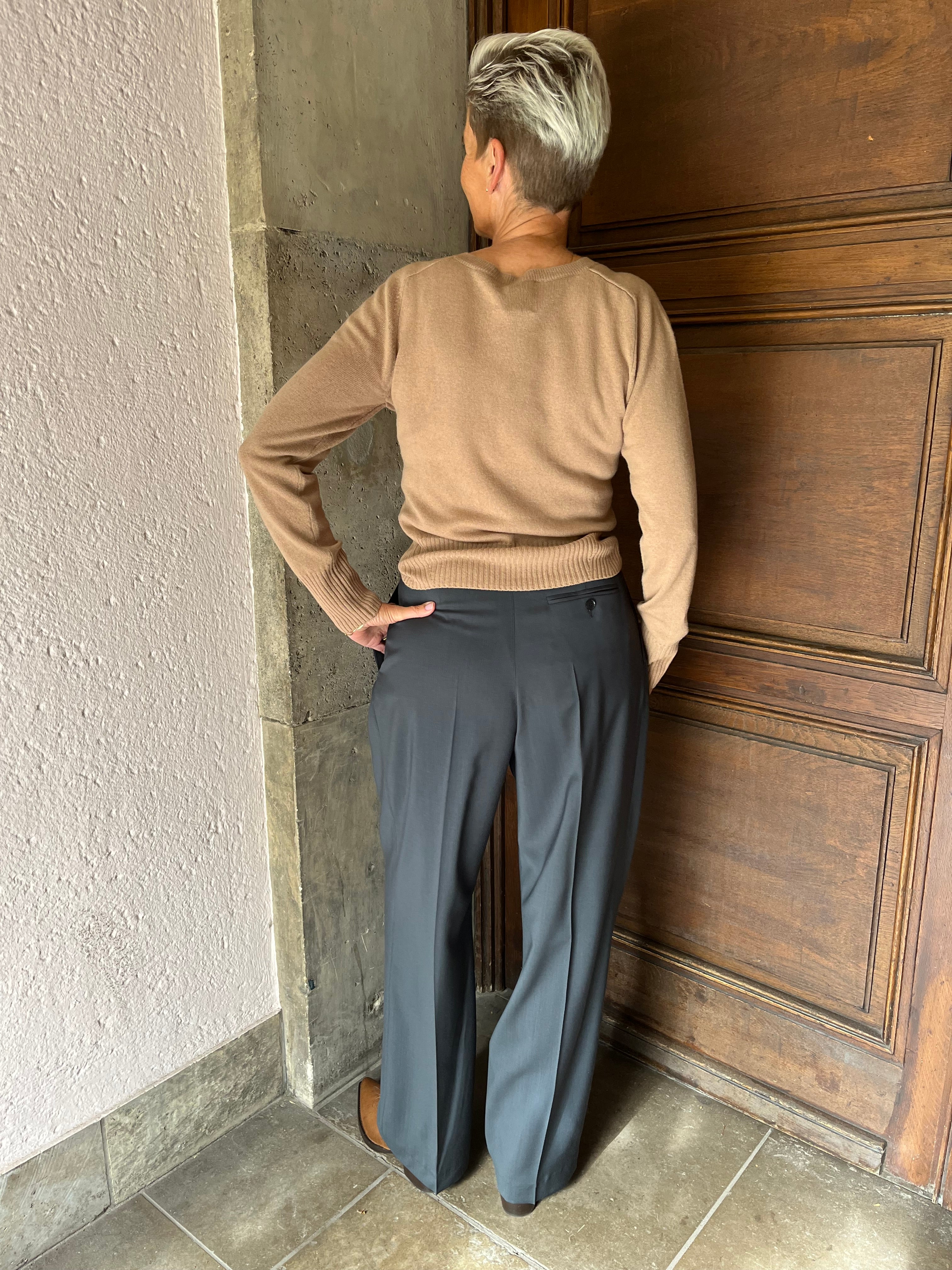Wunderschöne Hose mit Bundfalten in Schiefergrau von Barena Venezia. Sie ist gerade geschnitten und hat ein eher weites Bein. Die hochwertige Wolle bietet einen weichen Griff, sorgt für angenehmen Tragekomfort und einen minimalistischen und dennoch raffinierten Look. Cool-Wool kratzt nicht. Perfekt auch in Kombination mit der schwarzen Tunika von Barena Venezia.