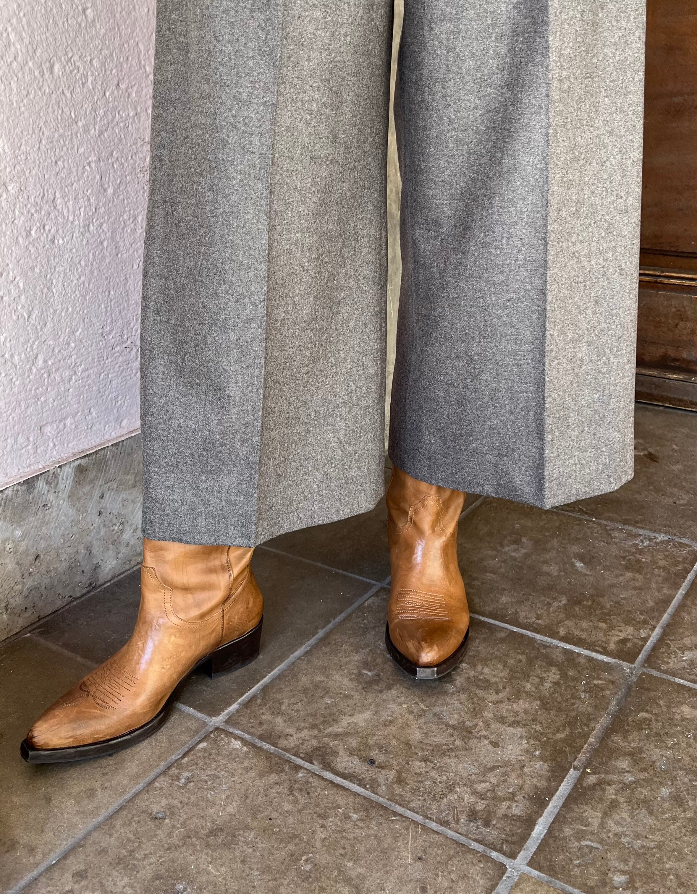Bezaubernde Culotte "AudreyW" in einem tiefen Grau-Melange von Briglia. Der klassische Schnitt mit zwei seitlichen Quetschfalten hat es uns besonders angetan. Denn damit bekommt die gerade und verkürzt geschnittene Hose zusätzliche Weite ganz ohne aufzutragen. Extra breite Gürtelschlaufen in der Front, seitliche Eingrifftaschen und zwei paspelierte Gesäßtaschen runden den klassischen Look perfekt ab. Eine ebenso elegante wie legere Hose - zeitlos schön!