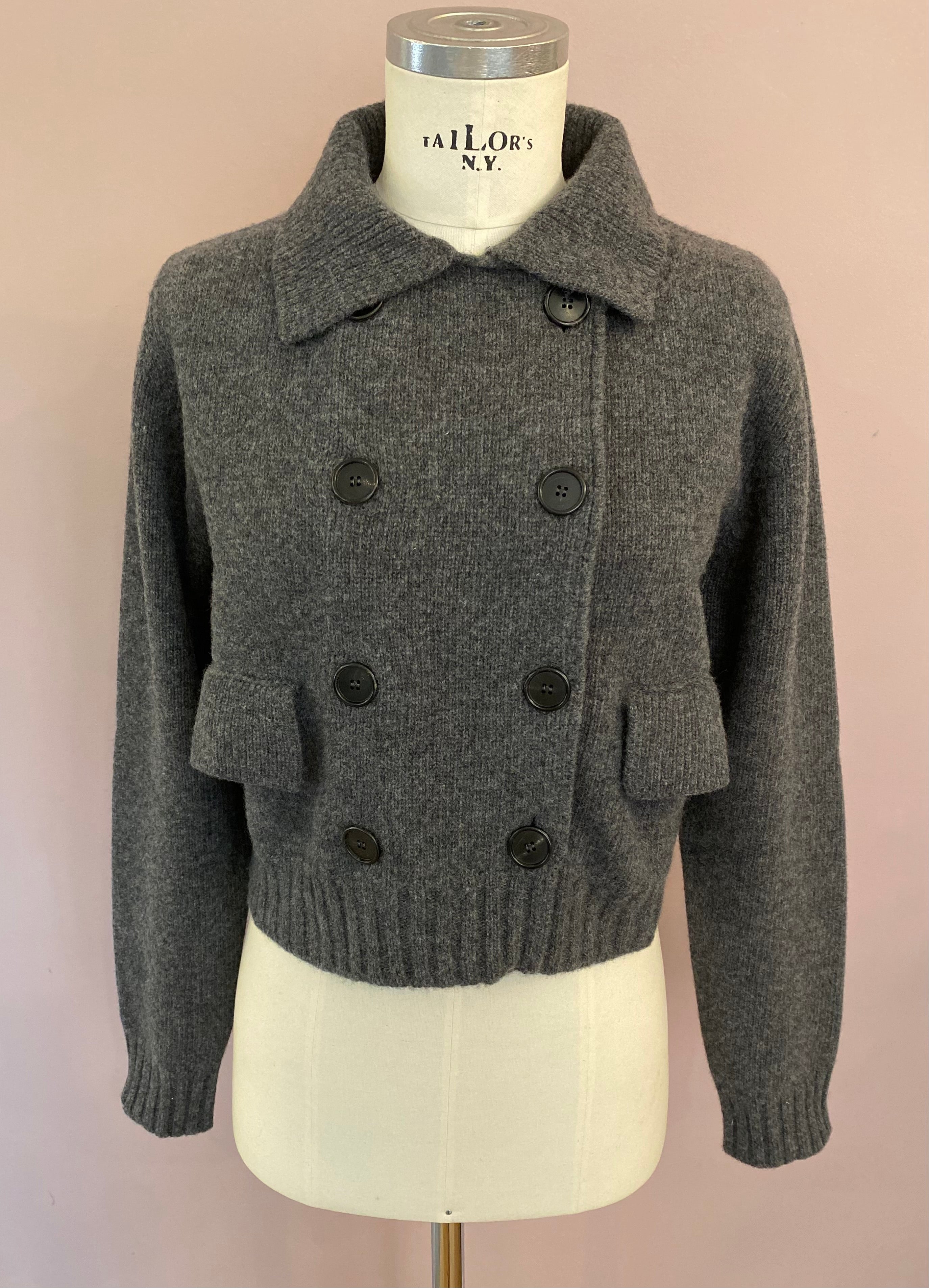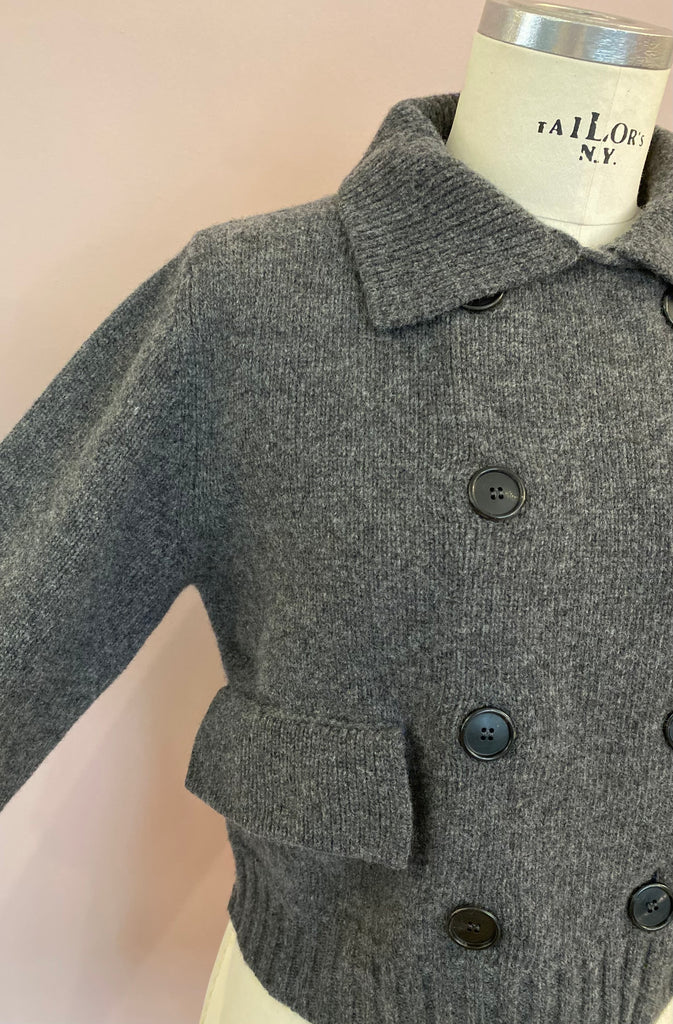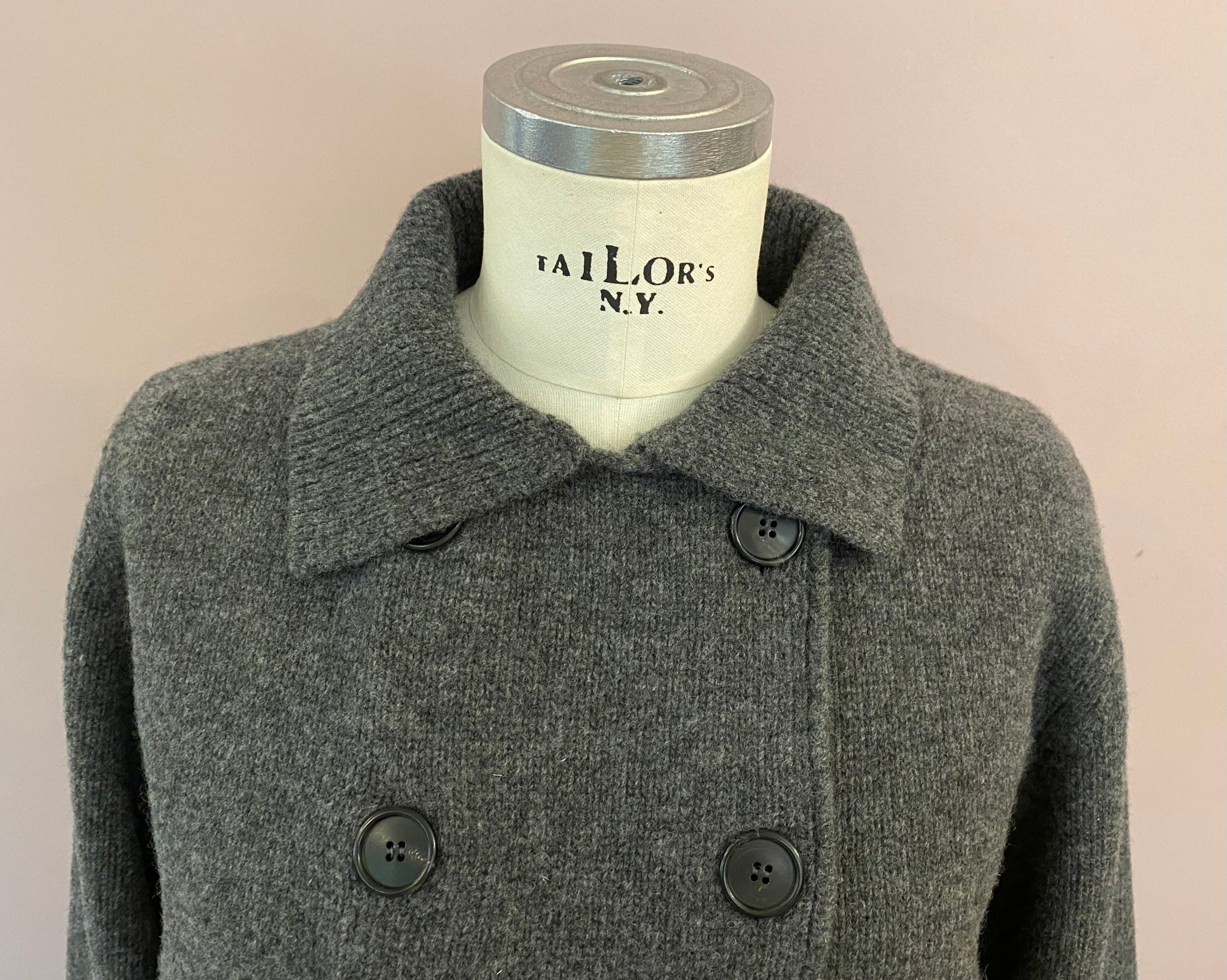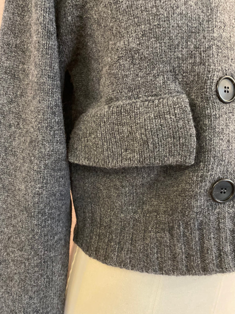 Stilvoller Grobstrickcardigan mit zweireiher Knopfleiste und Kent-Kragen in Anthrazit von Jucca.