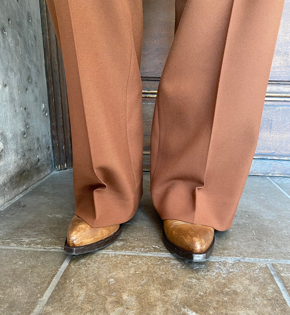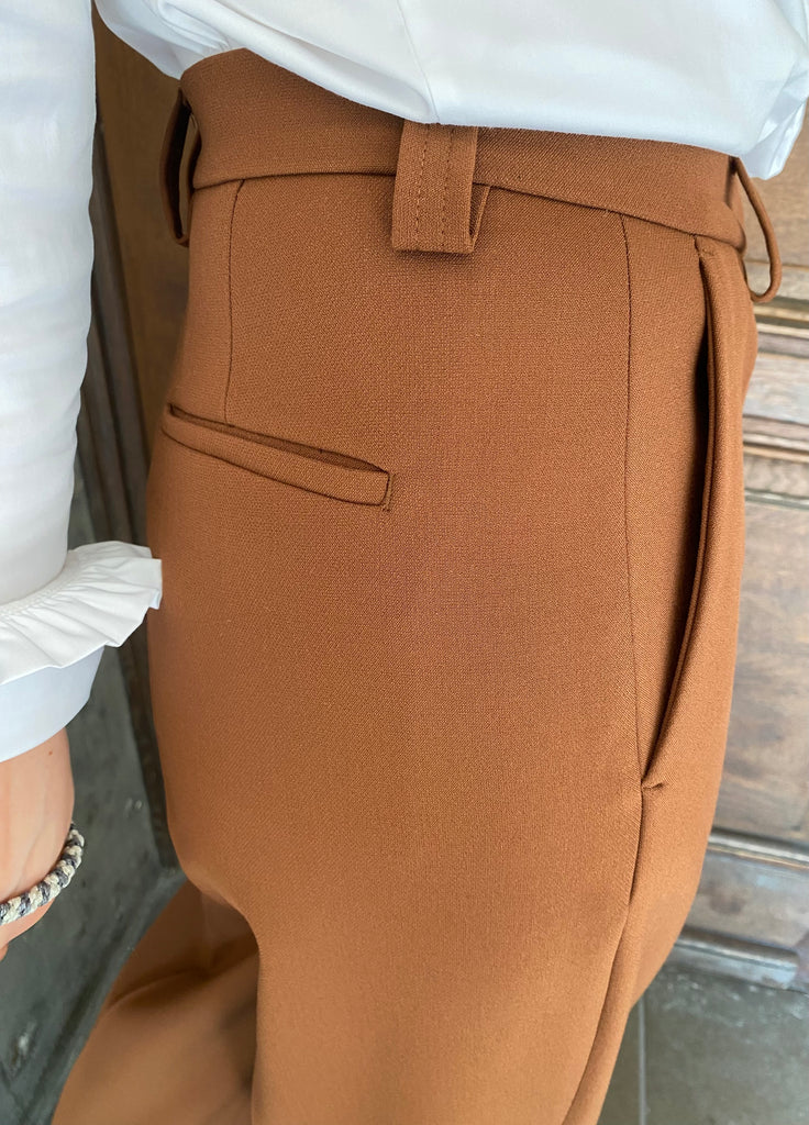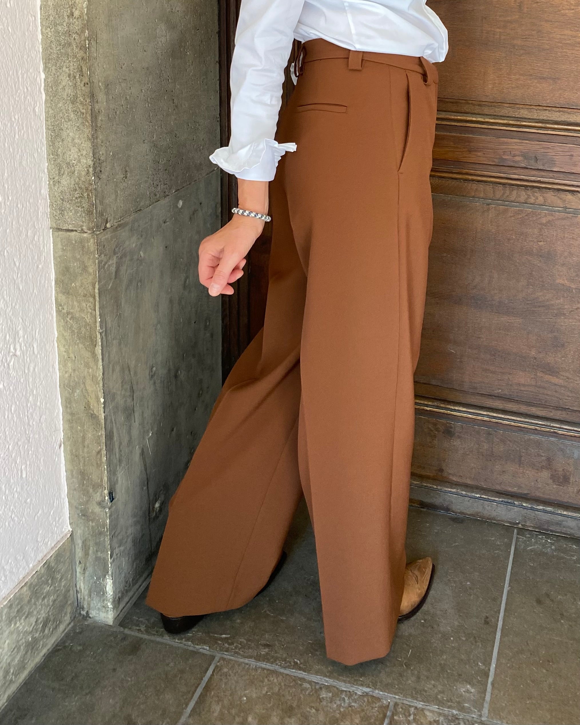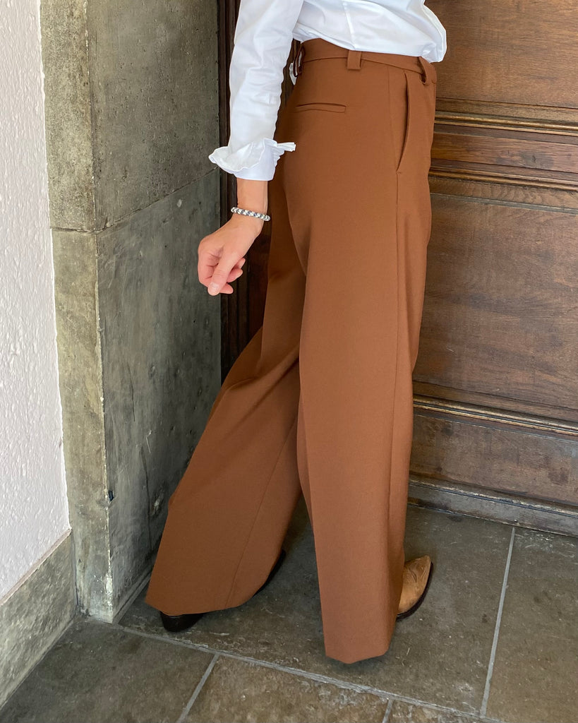 Schicke Palazzohose aus angenehmem Compact-Stretch in Haselnussbraun von Zenggi. Diese Hose sieht top aus und geht bei jeder Bewegung mit. Schräge Eingrifftaschen, Gürtelschlaufen und paspellierte Backpockets sind weitere Details der unkomplizierten Hose, die nicht nur auf Reisen eine optimale Figur macht.