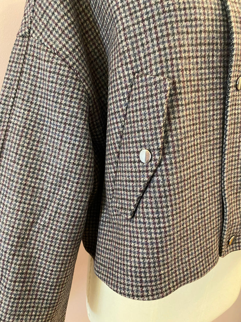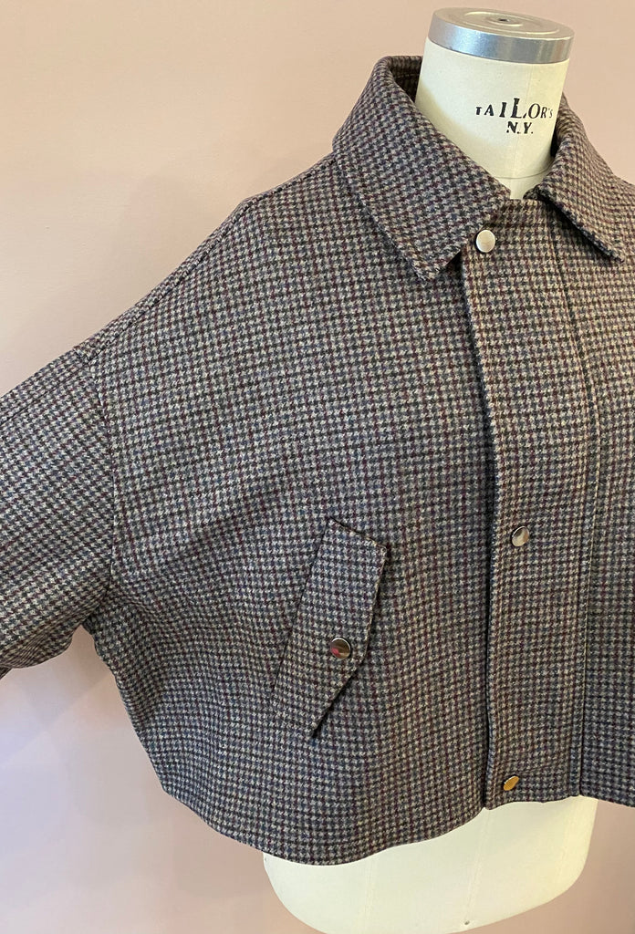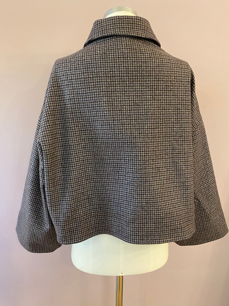 Verkürzte Capejacke in einem feinen Karomuster in Burgund und Grau von SoSUE.
