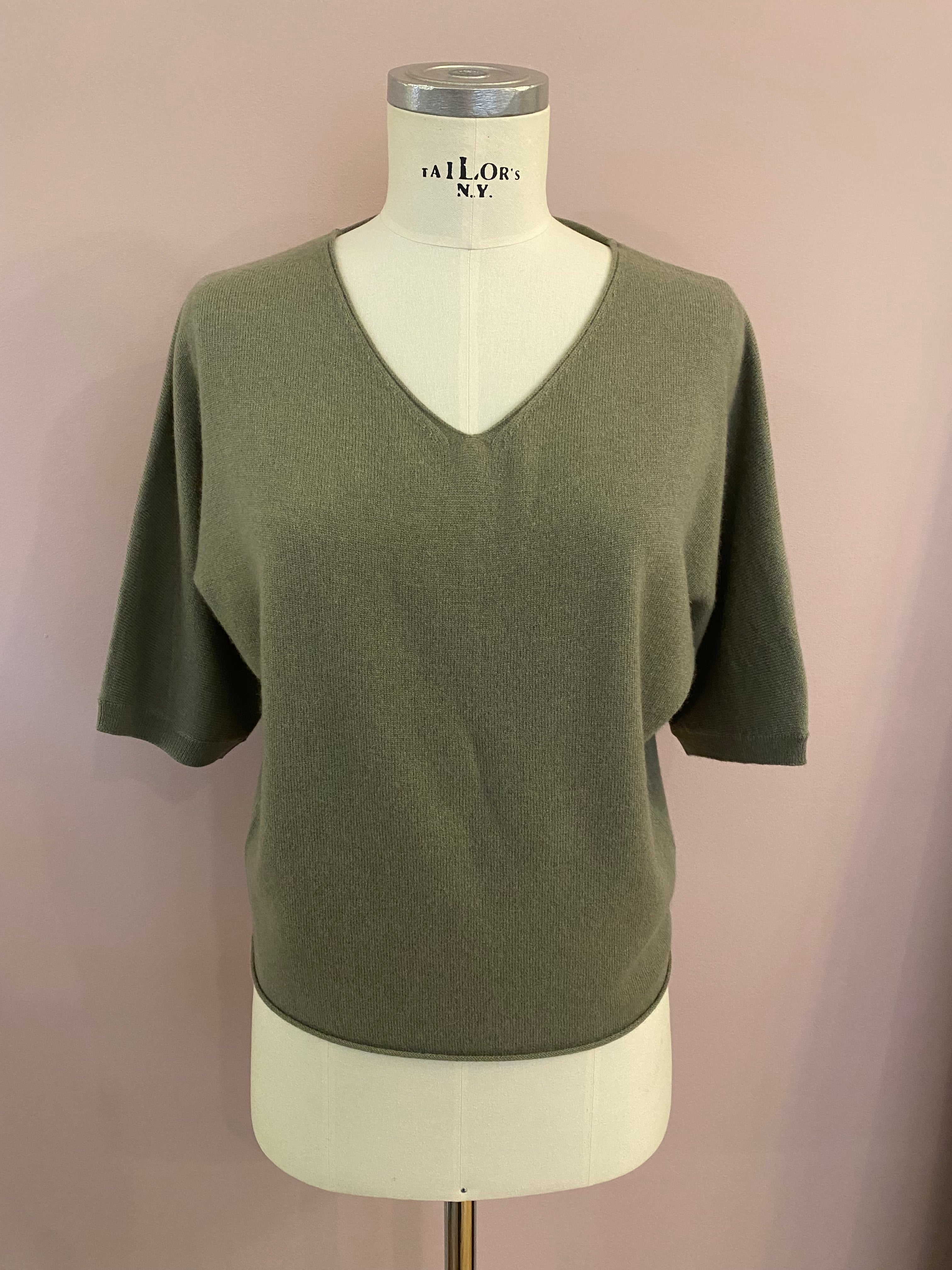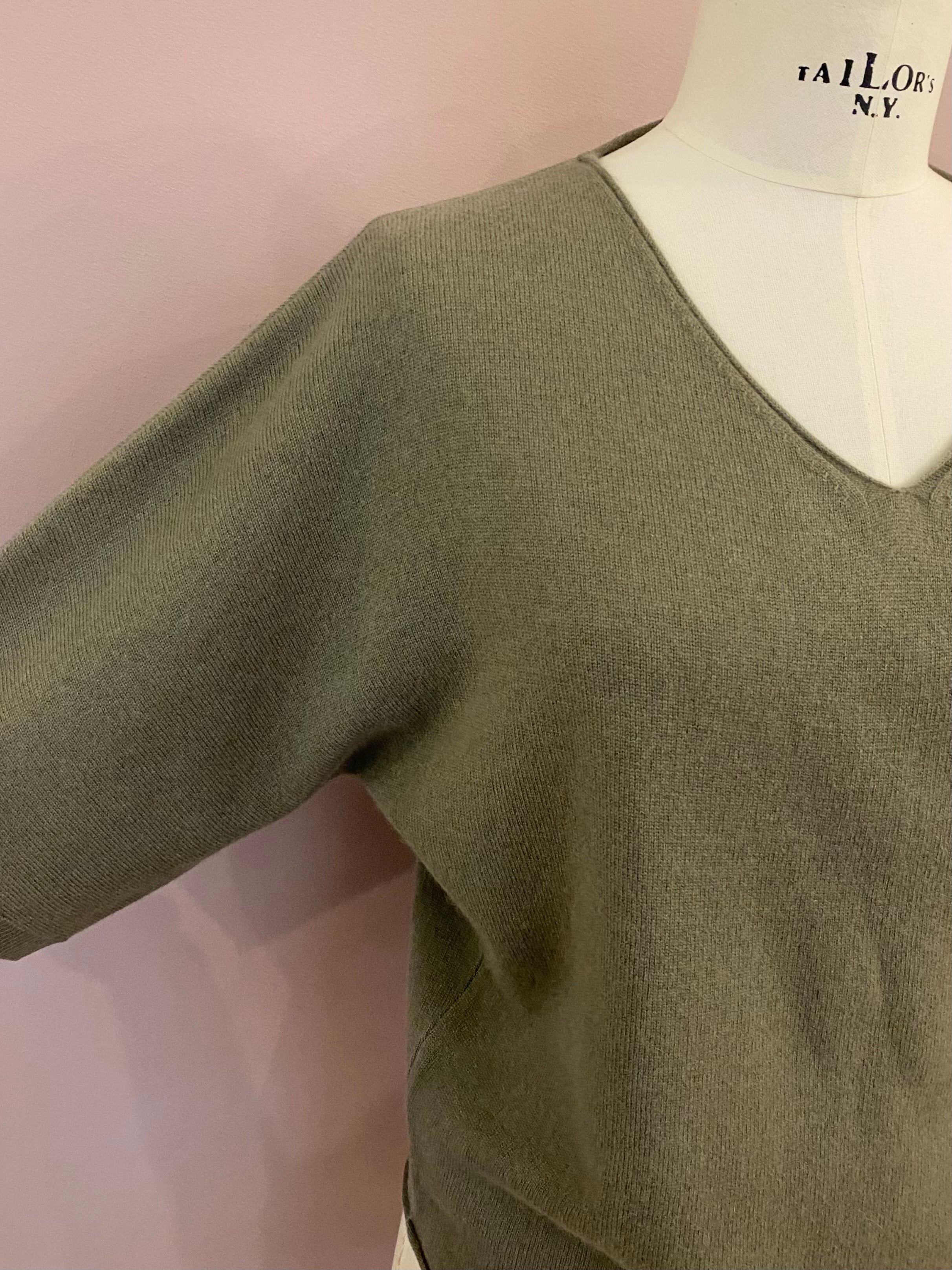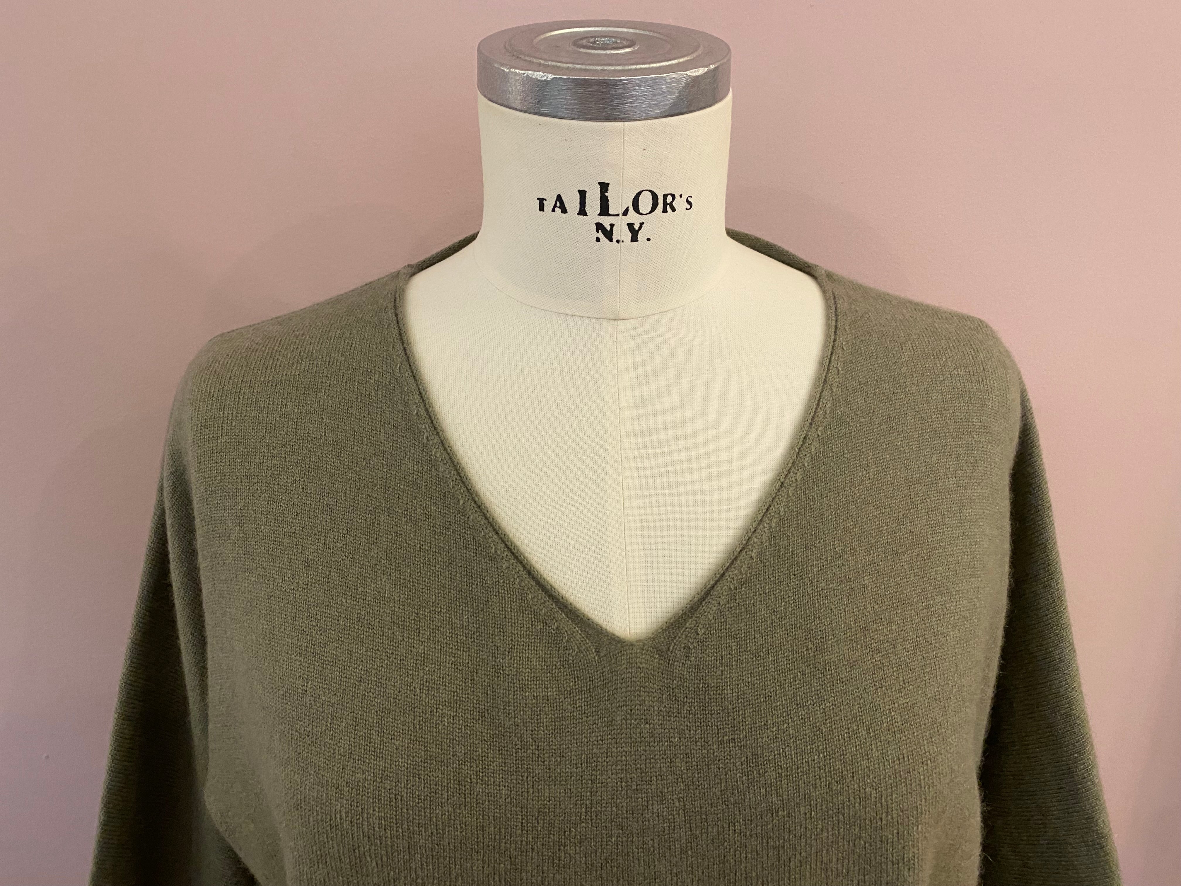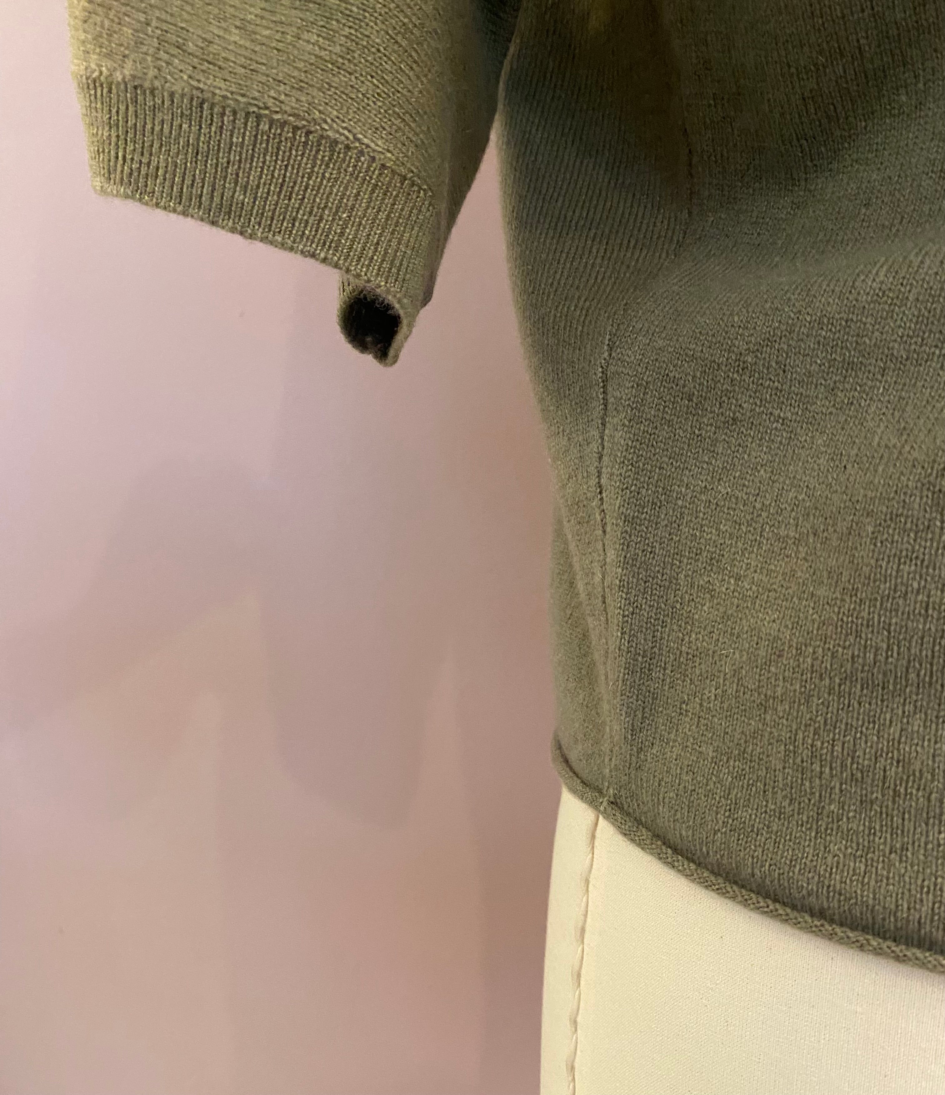 Feiner Glattstrick-Pullover mit V-Neck in Salbei-Grün von FFC. Leicht kastiger, aber dennoch figurnaher Schnitt. Der untere Abschluss und der V-Ausschnitt sind mit lässigen Rollsäumen versehen. Der halbe, nahtlos eingestrickte Arm schließt mit einem schmalen Rippstrick-Bündchen ab. Ein zeitloser Pullover, der als Solist ebenso eine gute Figur macht, wie über Blusen oder Longsleeves. Der angenehme Wollmix mit Cashmere garantiert hohen Tragekomfort.