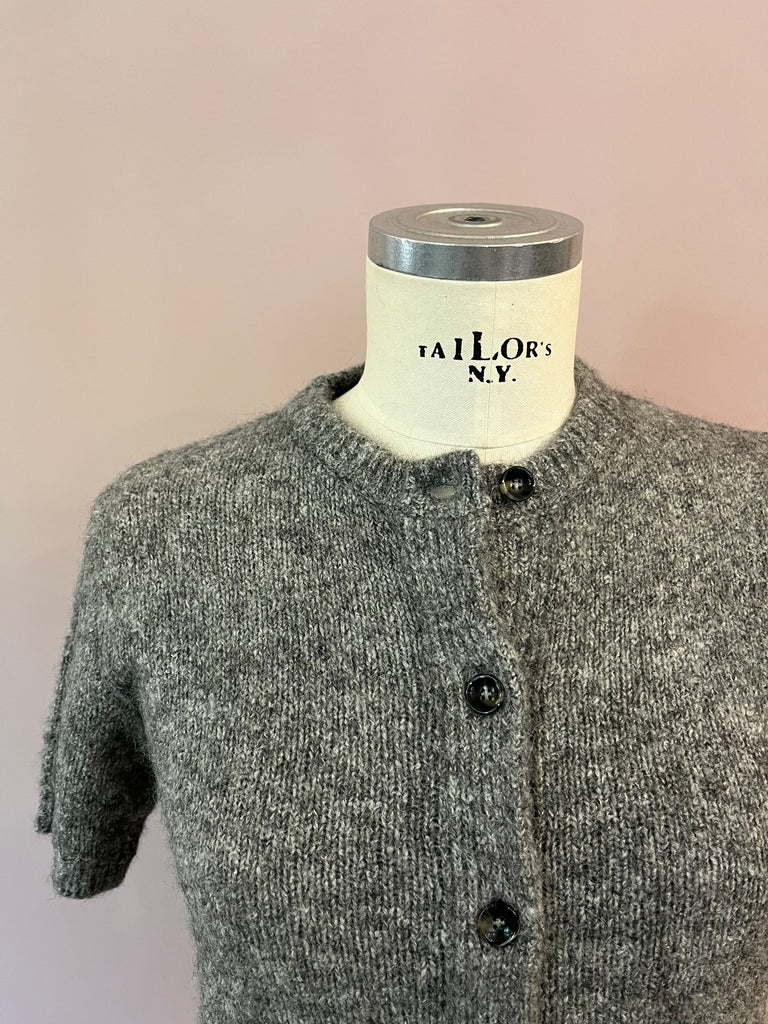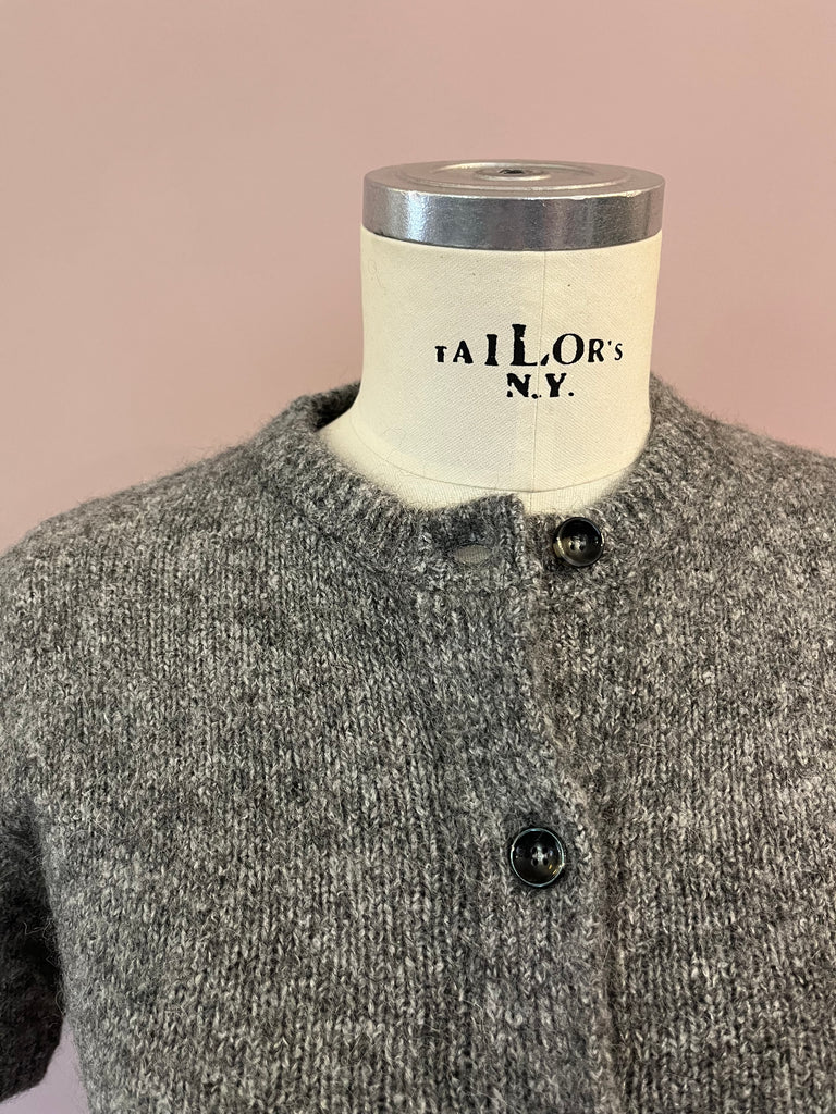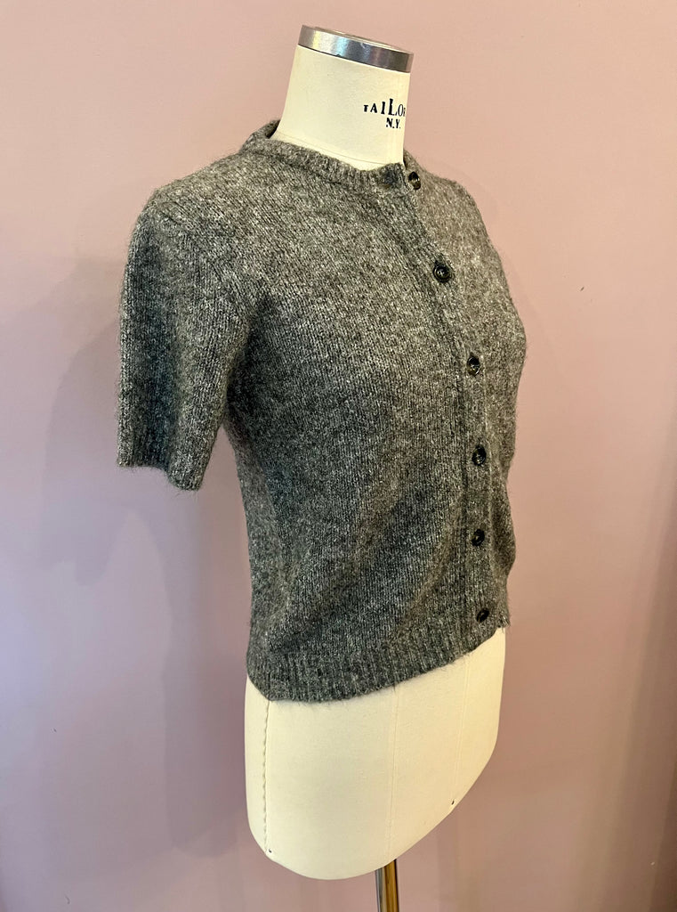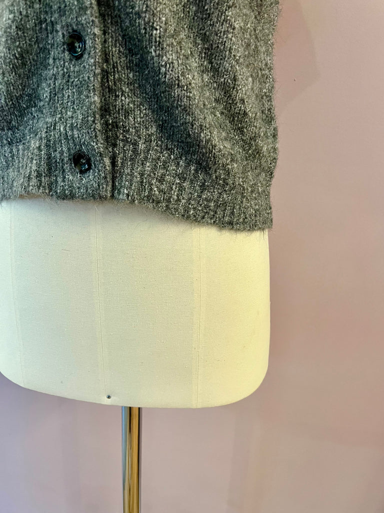 Dieser edle, grau melangierte Cardigan von Roberto Collina vereint zeitlose Eleganz mit stylischem Twist. Der kurze Schnitt macht ihn zum perfekten Styling-Partner für Mid- und High-Waist-Hosen oder Röcke, während die kuschelweiche Strickqualität für ein luxuriös angenehmes Tragegefühl sorgt. Mit seinem cleanen Design und den dezenten Knöpfen lässt er sich vielseitig kombinieren. Von casual bis elegant.