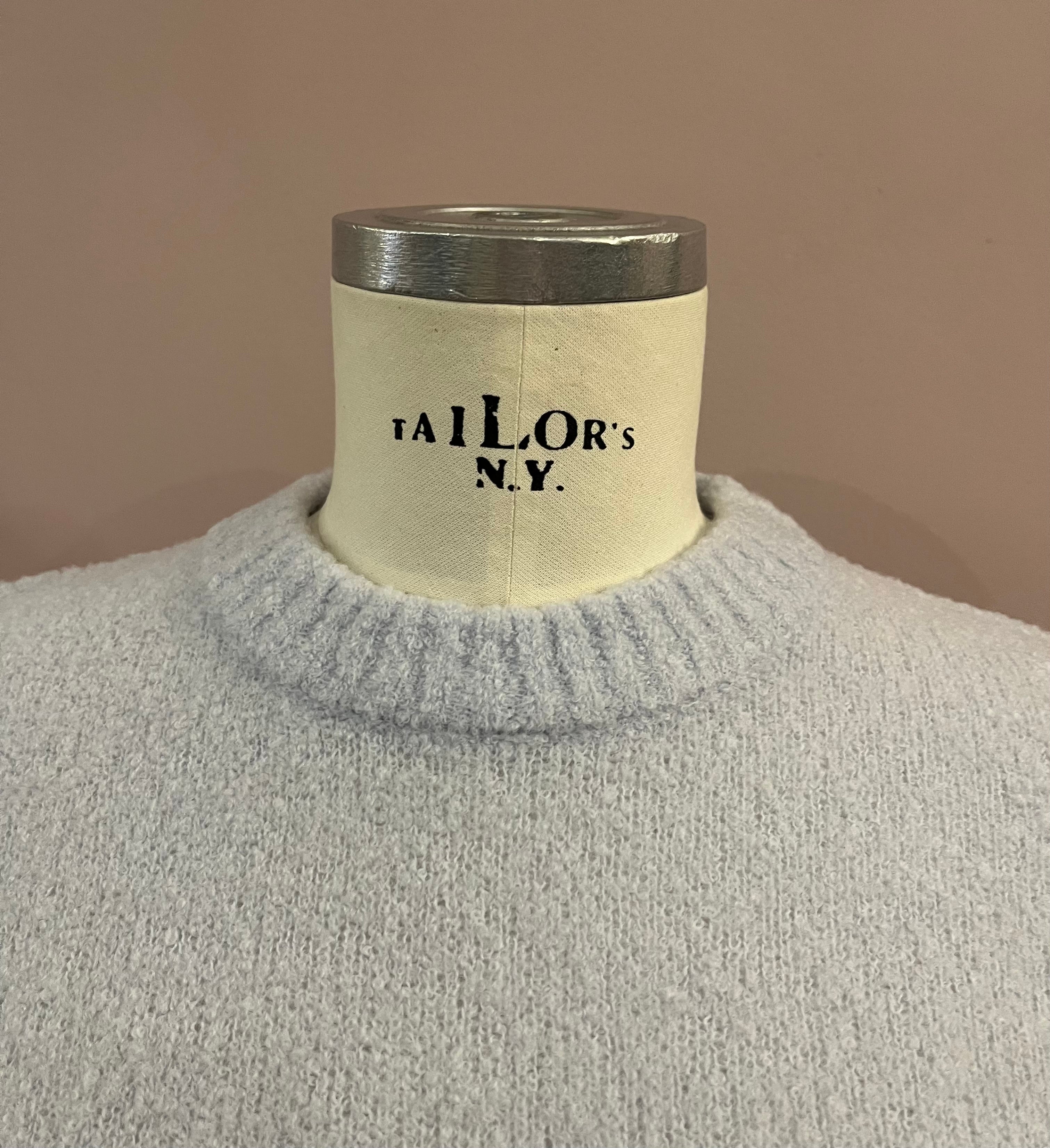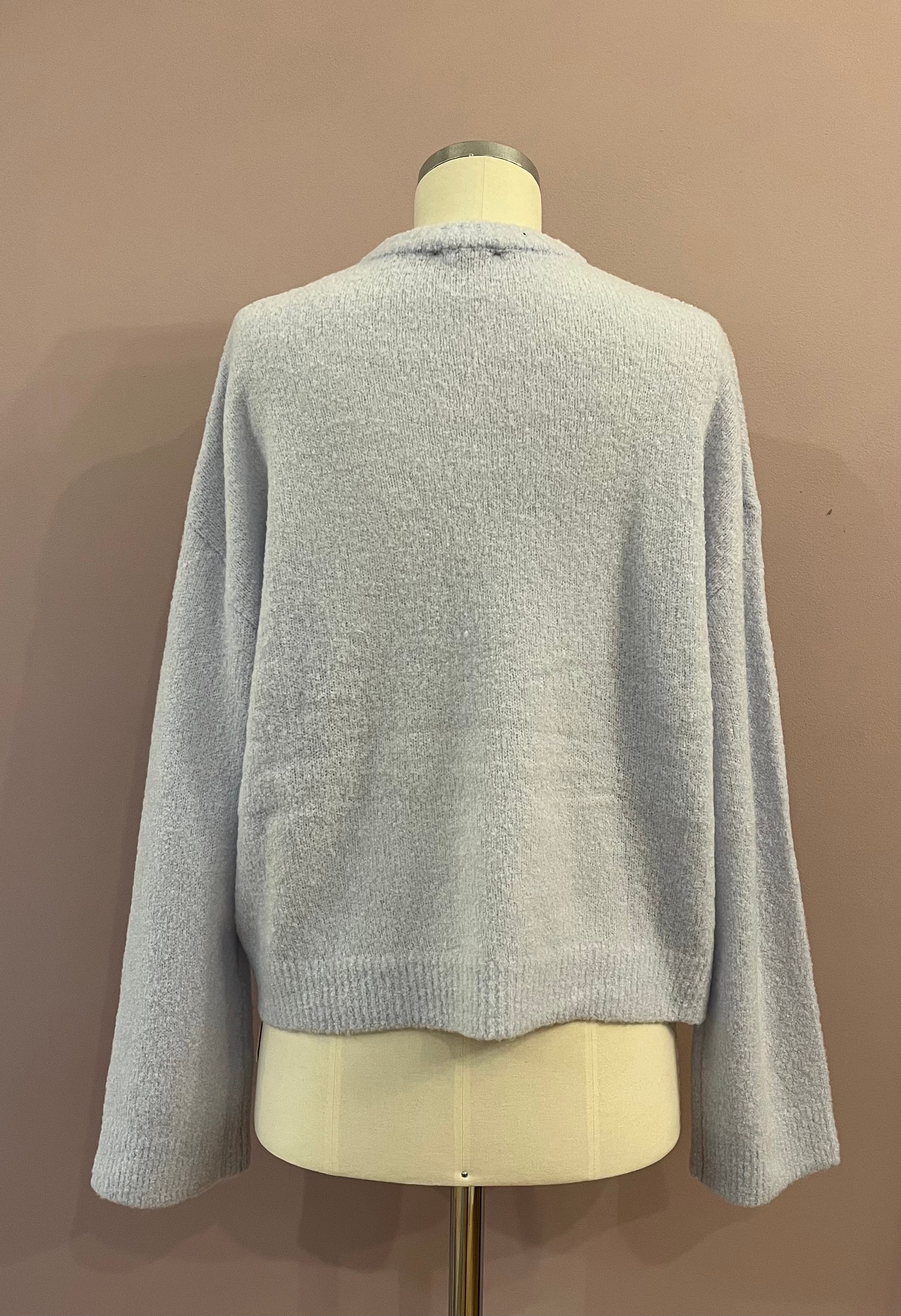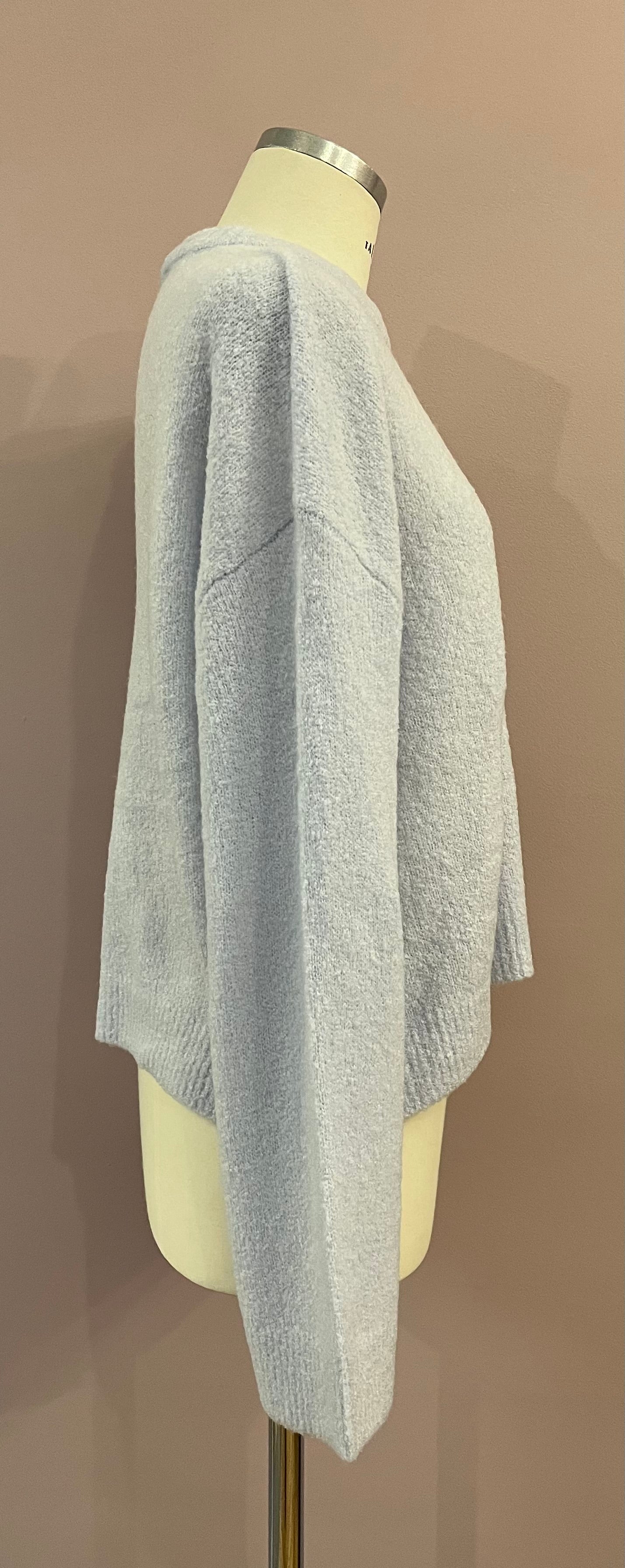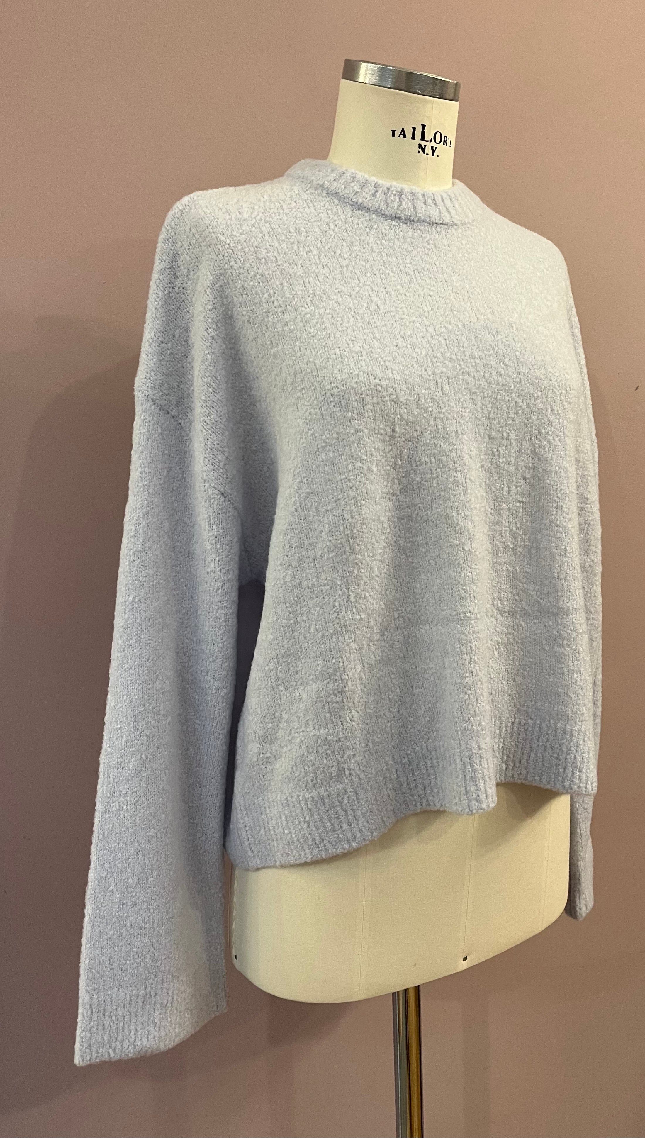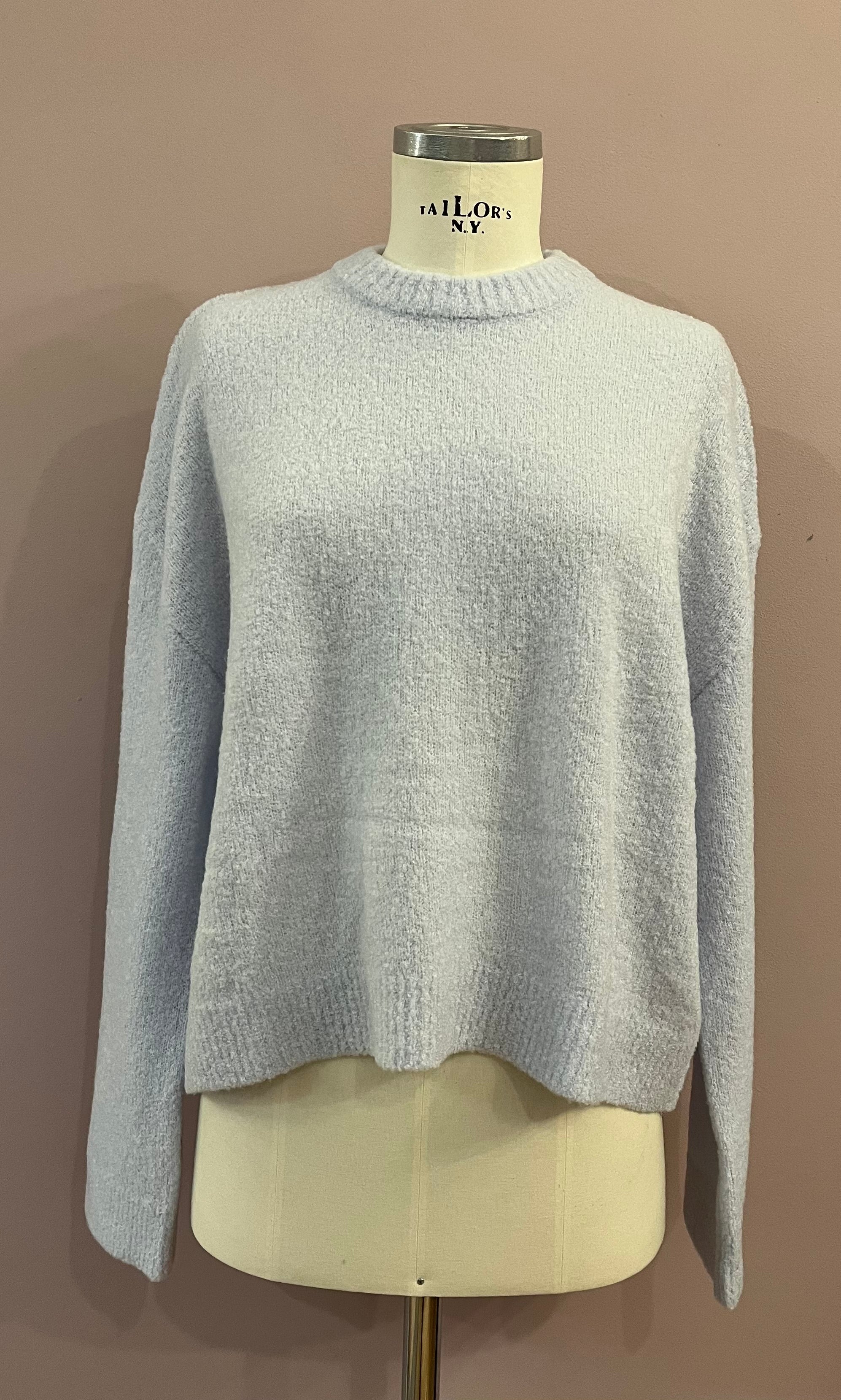 Kuschelweicher Crew-Neck-Pullover aus einem leichten Wollmix in Lichtblau von S.Marlon. Leicht oversized geschnitten - mit geradem Arm und Rippstrick-Details an den Abschlüssen. Die Frontpartie ist leicht verkürzt. Ein wunderbarer Allrounder, der sich problemlos kombinieren lässt.