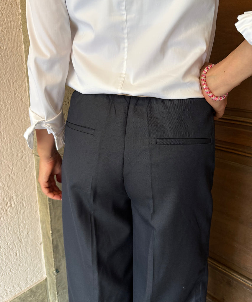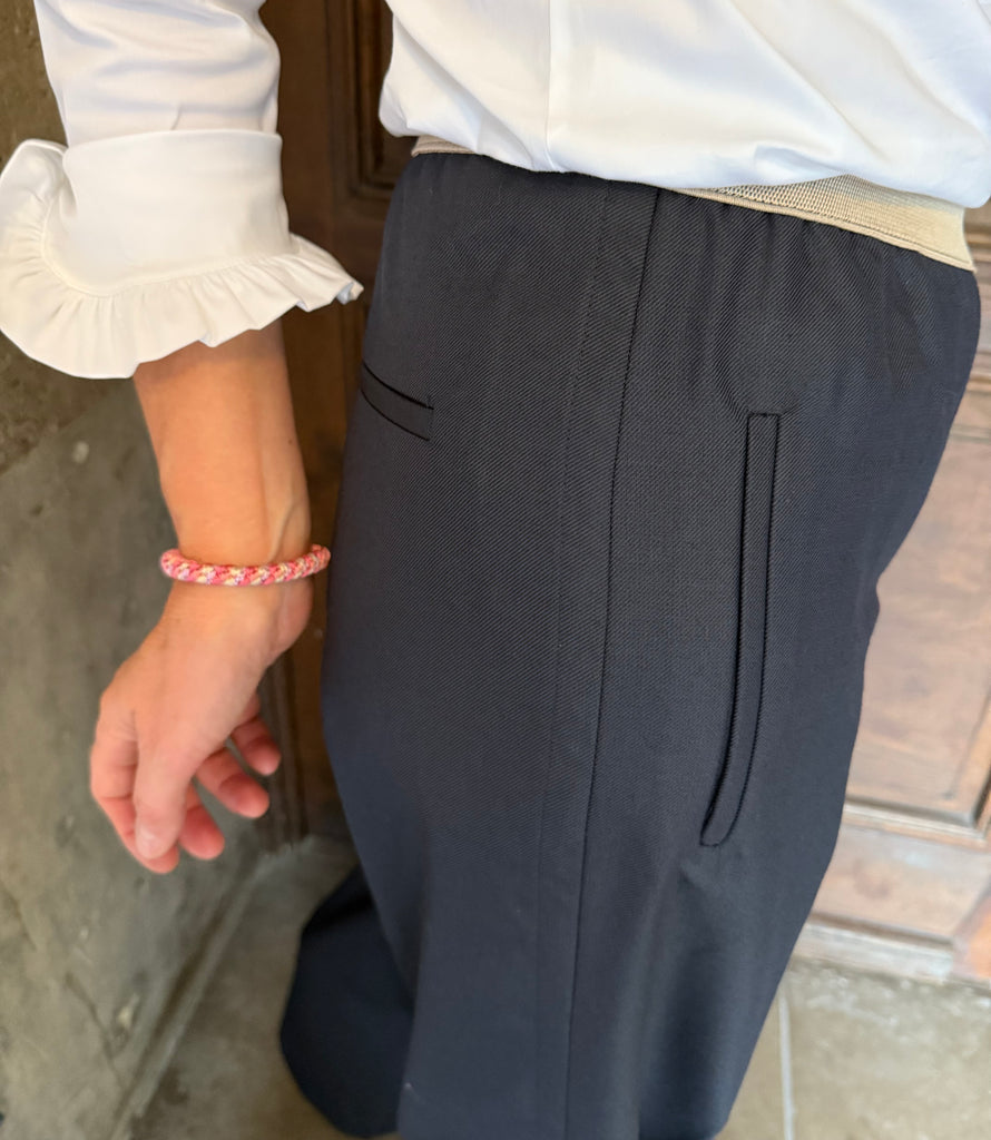 Palazzo-Hose in Dunkelblau, mit kontrastierendem Komfortbund, von Stella Forest