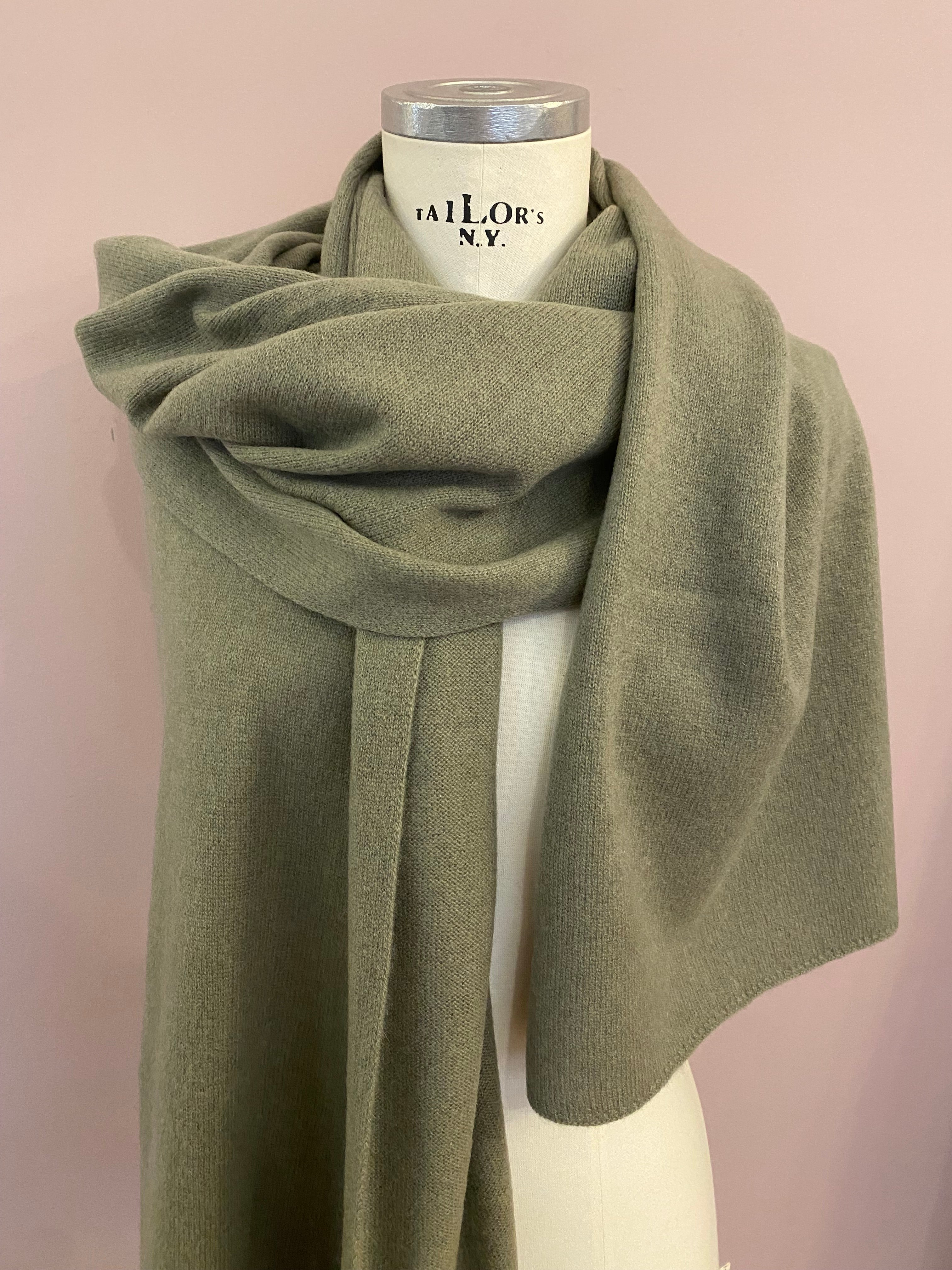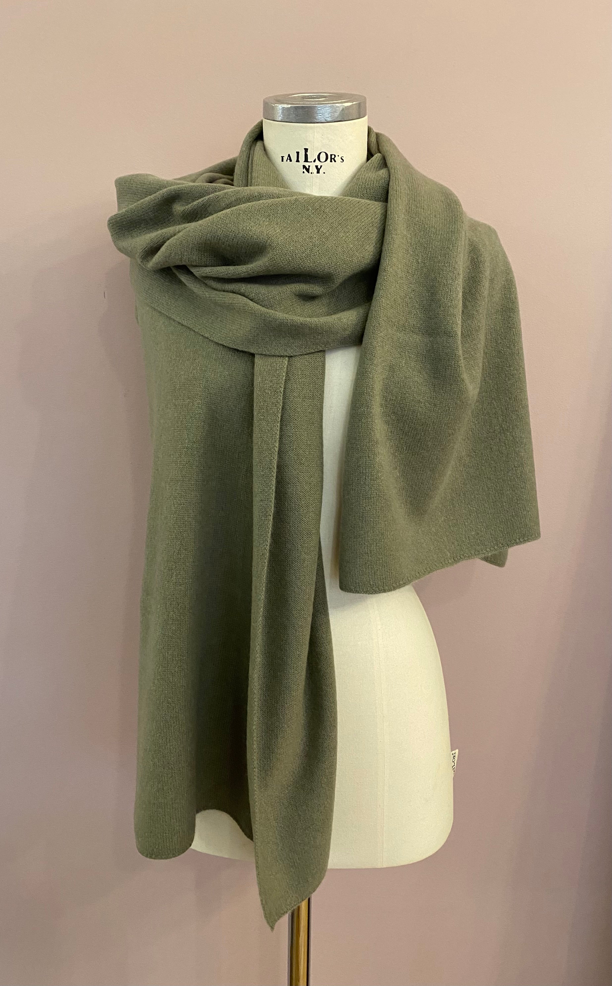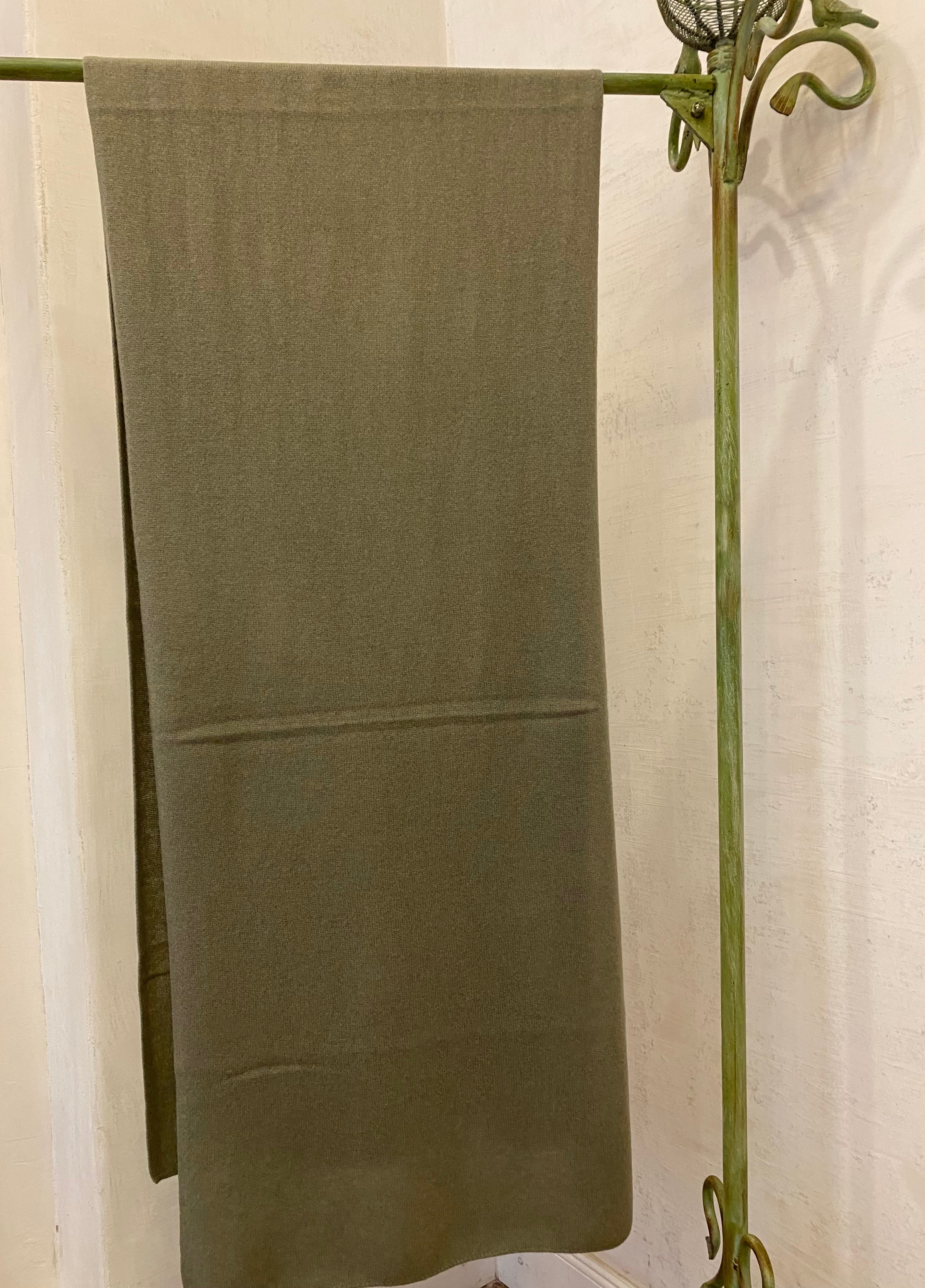 Feiner Glattstrickschal in Salbei-Grün von FFC. Anschmiegsamer Strick aus einem Woll-Cashmere-Mix. Seine angenehme Breite macht den Schal zu einem Allrounder, der das ganze Jahr über getragen werden kann - um den Hals ebenso, wie um die Schultern.