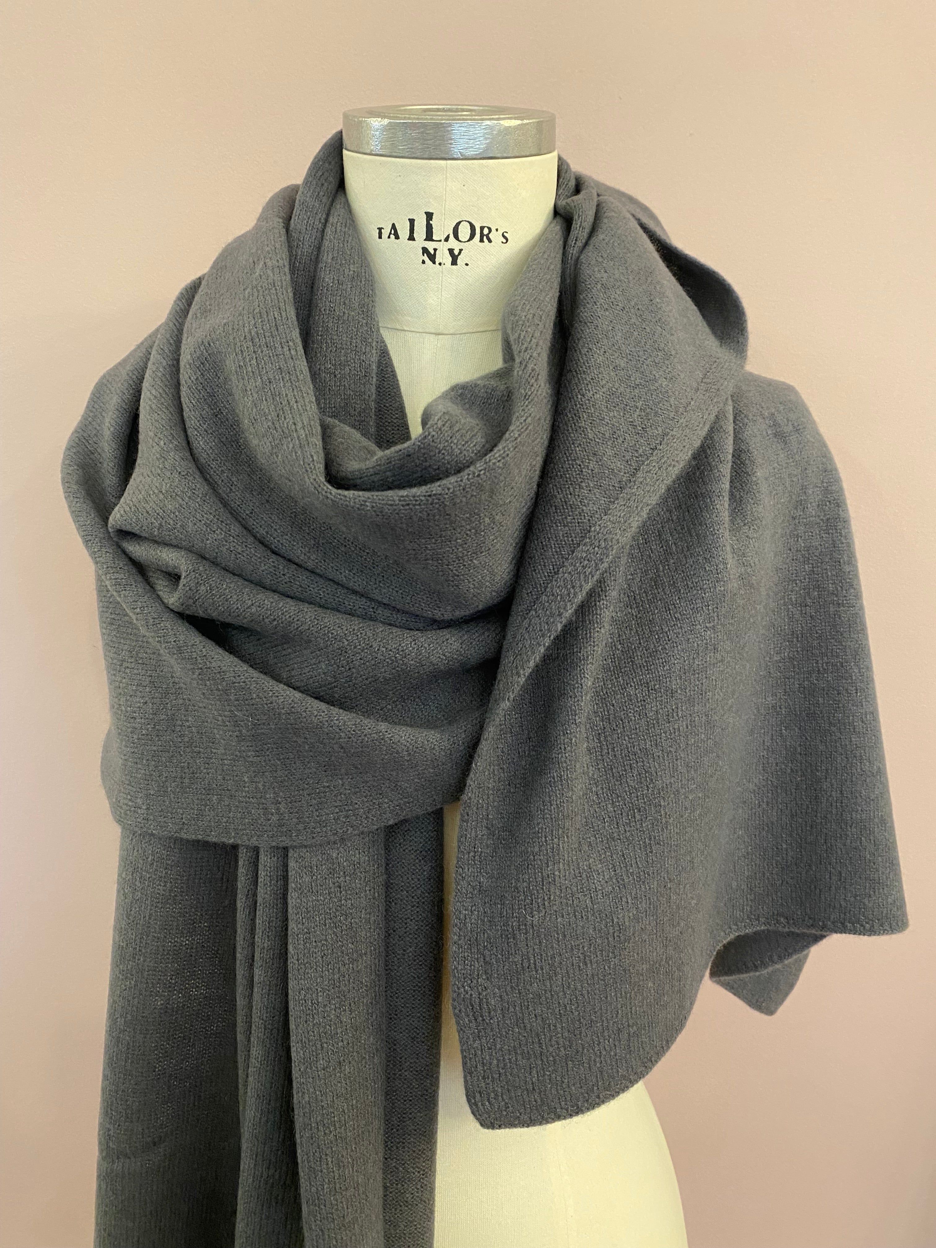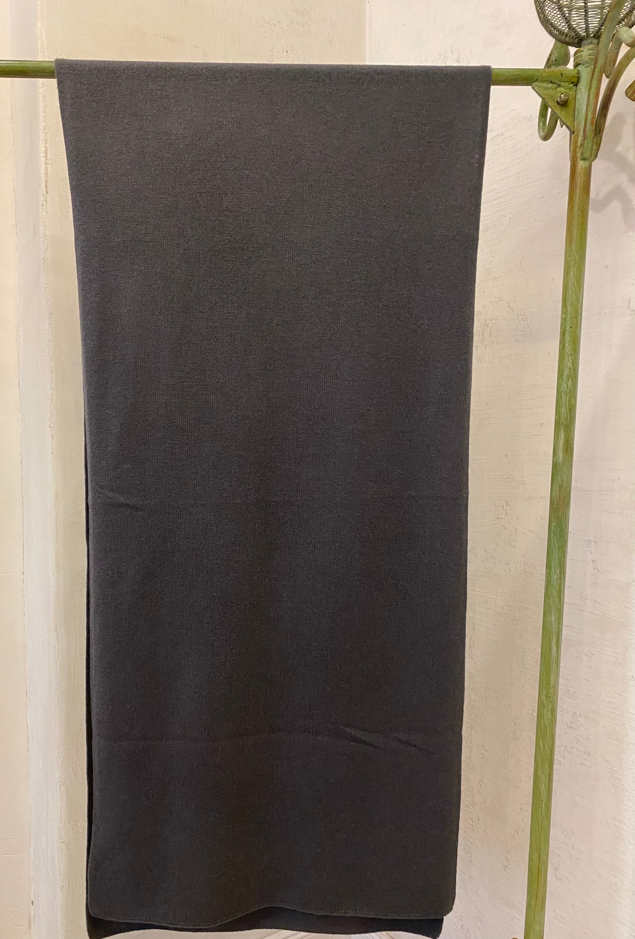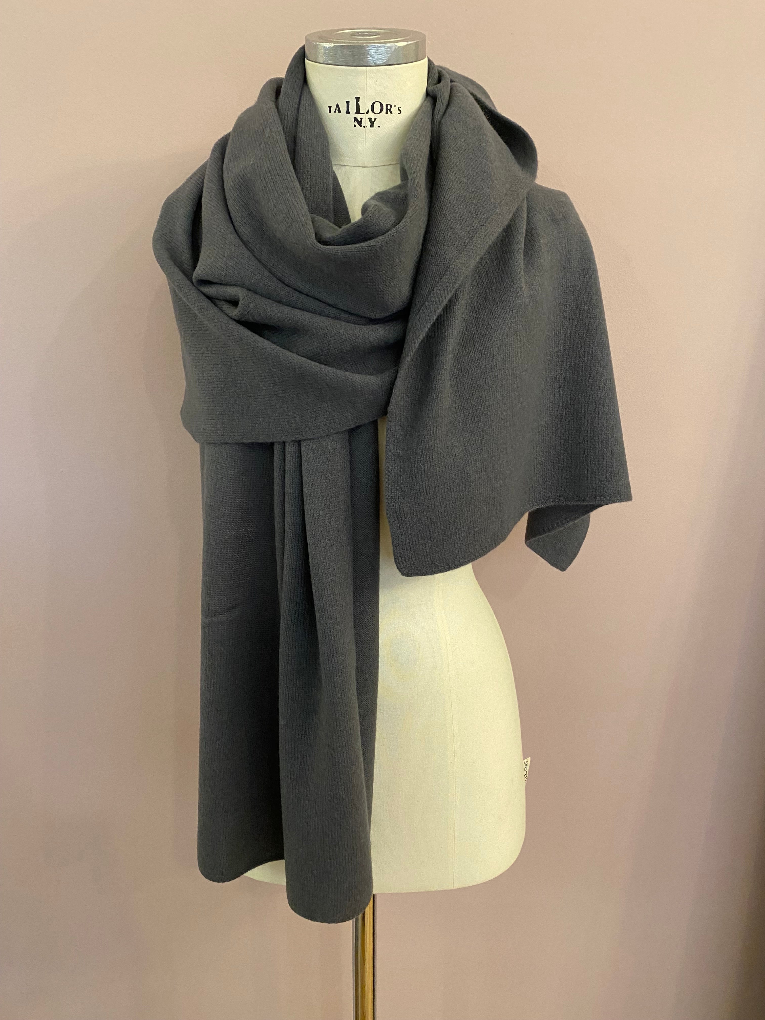 Feiner Glattstrickschal in Eisengrau von FFC. Anschmiegsamer Strick aus einem Woll-Cashmere-Mix. Seine angenehme Breite macht den Schal zu einem Allrounder, der das ganze Jahr über getragen werden kann - um den Hals ebenso, wie um die Schultern.