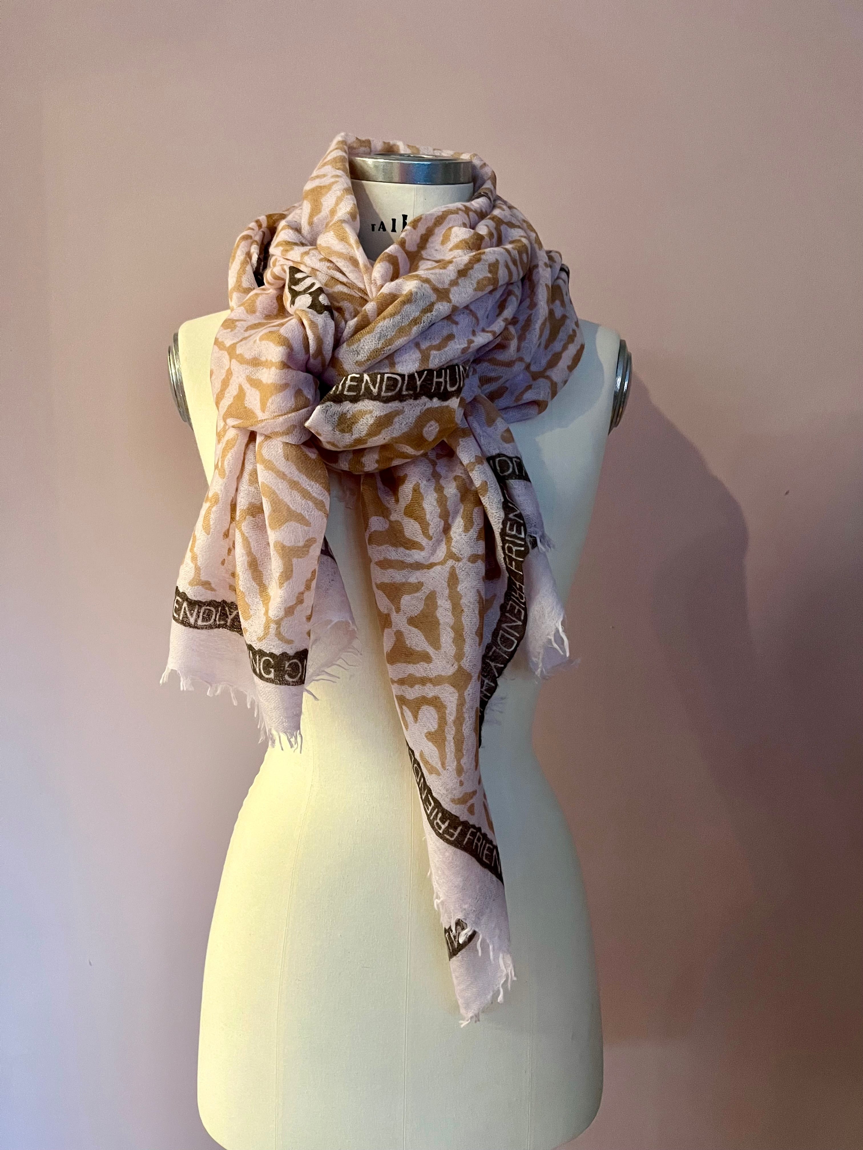 "Eyes of Marrakesh" schon der Name dieses wunderbar zarten Cashmere-Schaltuchs klingt wie ein Märchen aus 1000 und eine Nacht. Das in sanften Violetttönen mit Braun gehaltene Motiv ist eine Hommage an die typischen, orientalischen Ornamente dieser faszinierenden Wüstenmetropole. Der umlaufende Friendly-Hunting-Schriftzug verleiht dem Motiv einen würdigen Rahmen.