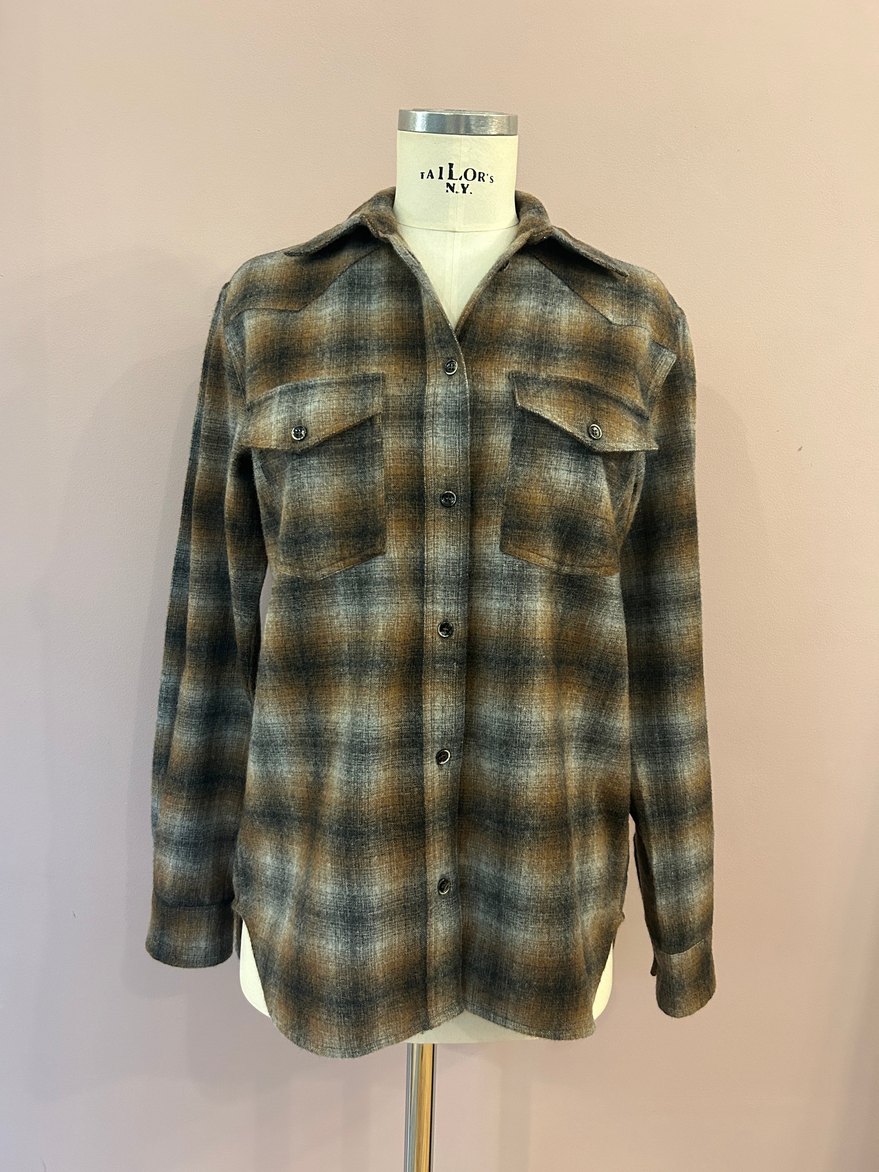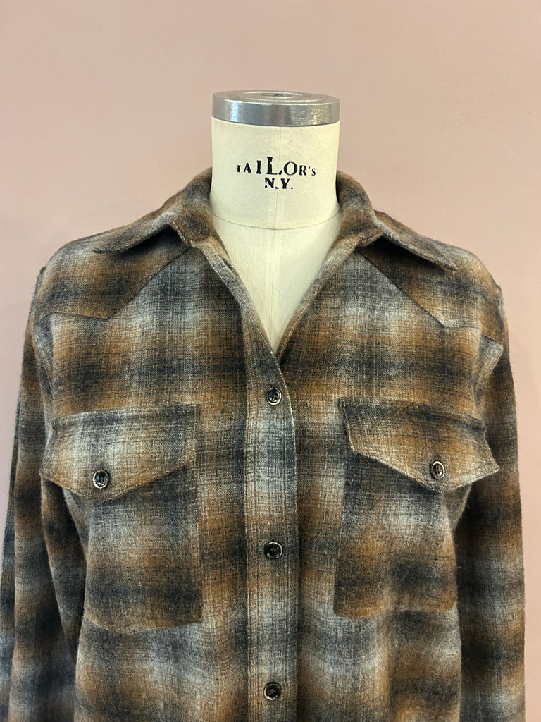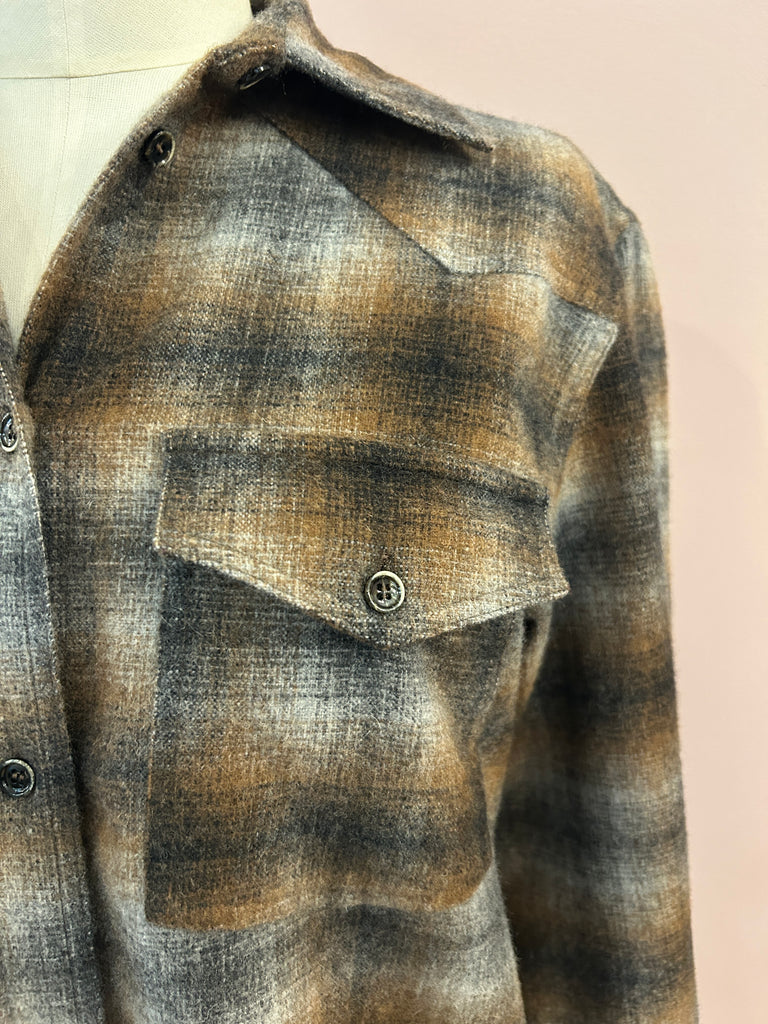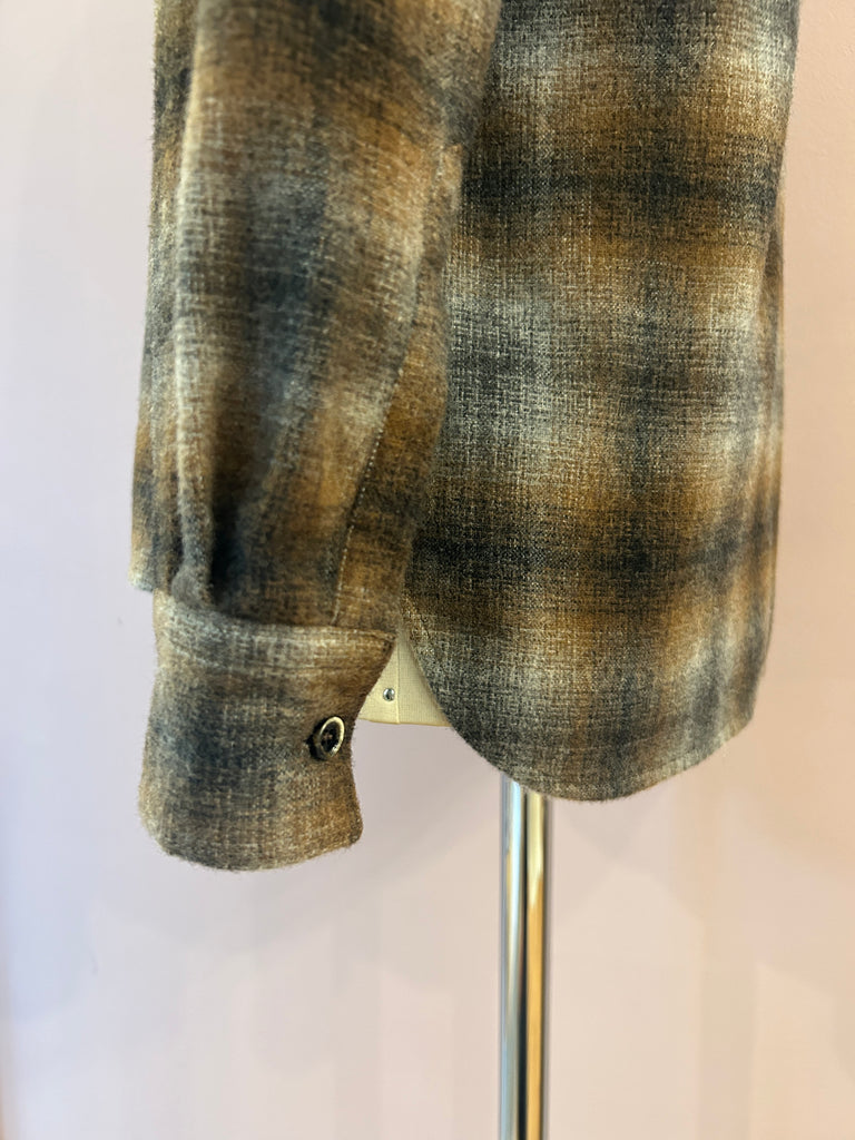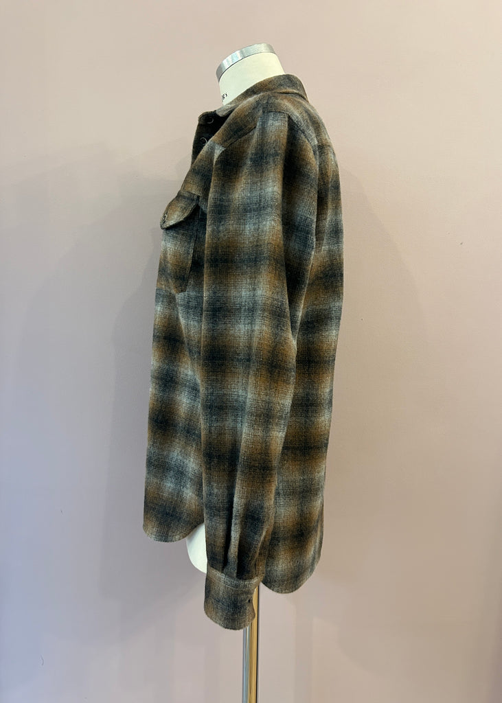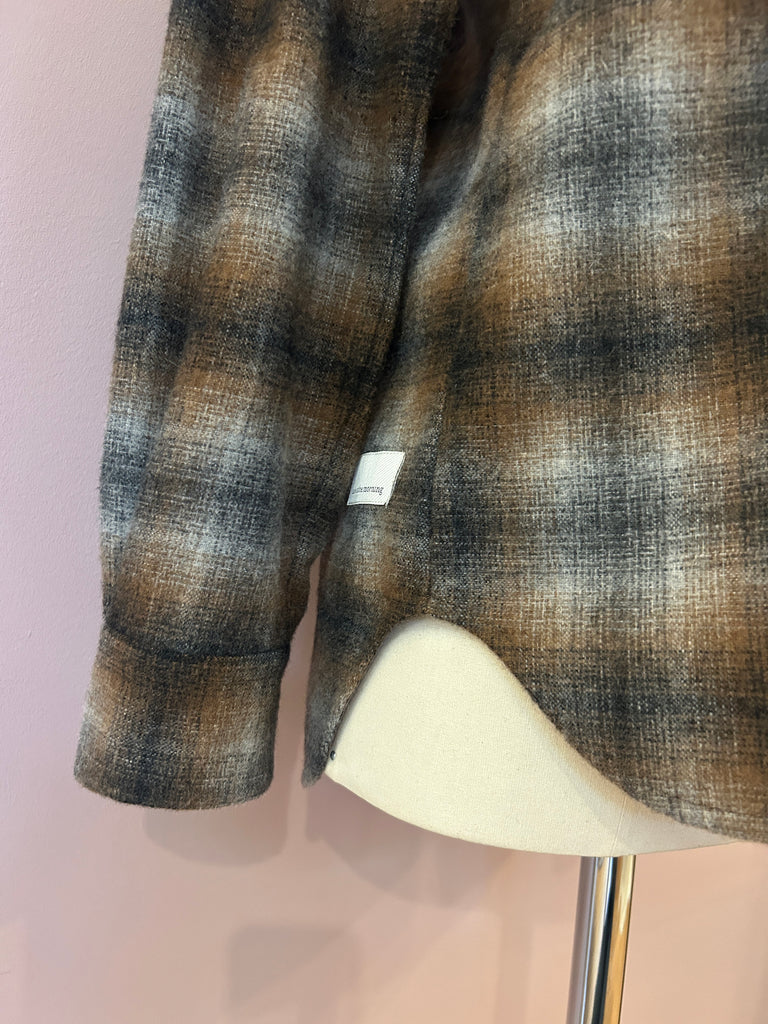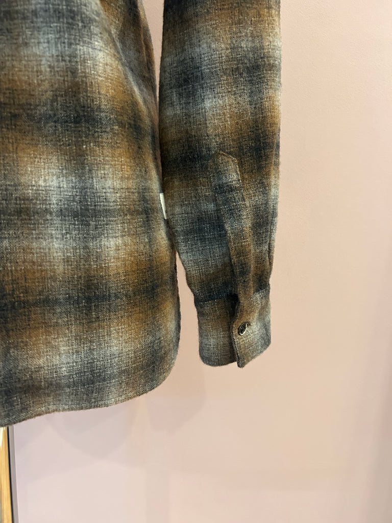 Langgeschnittenes Flanellhemd mit großem Caro-Check-Muster in Braun- und Grautönen von nine in the morning. Im klassischen Look mit kentkragen, Pattentaschen, Schulterpatches und spitzzulaufender Rückenpasse. Die moderat geschnittenen Ärmel schießen mit einer Ein-Knopf-Manschette ab. Schöne Schließknöpfe sowie seitliche Cutouts und leicht gebogte Abschlüsse mit einer abgepaspelten Kante unterstreichen die feine Verarbeitung des zeitlosen, italienischen Hemdes.