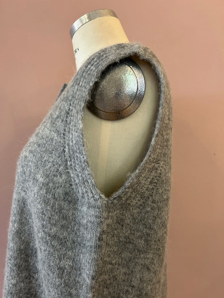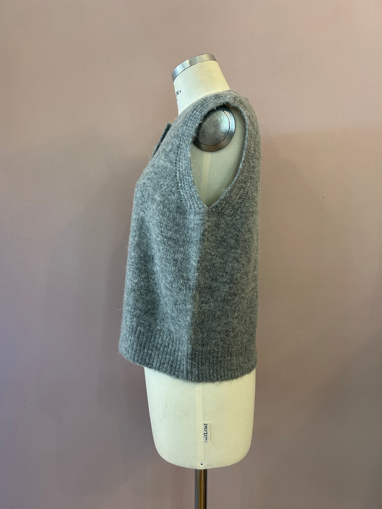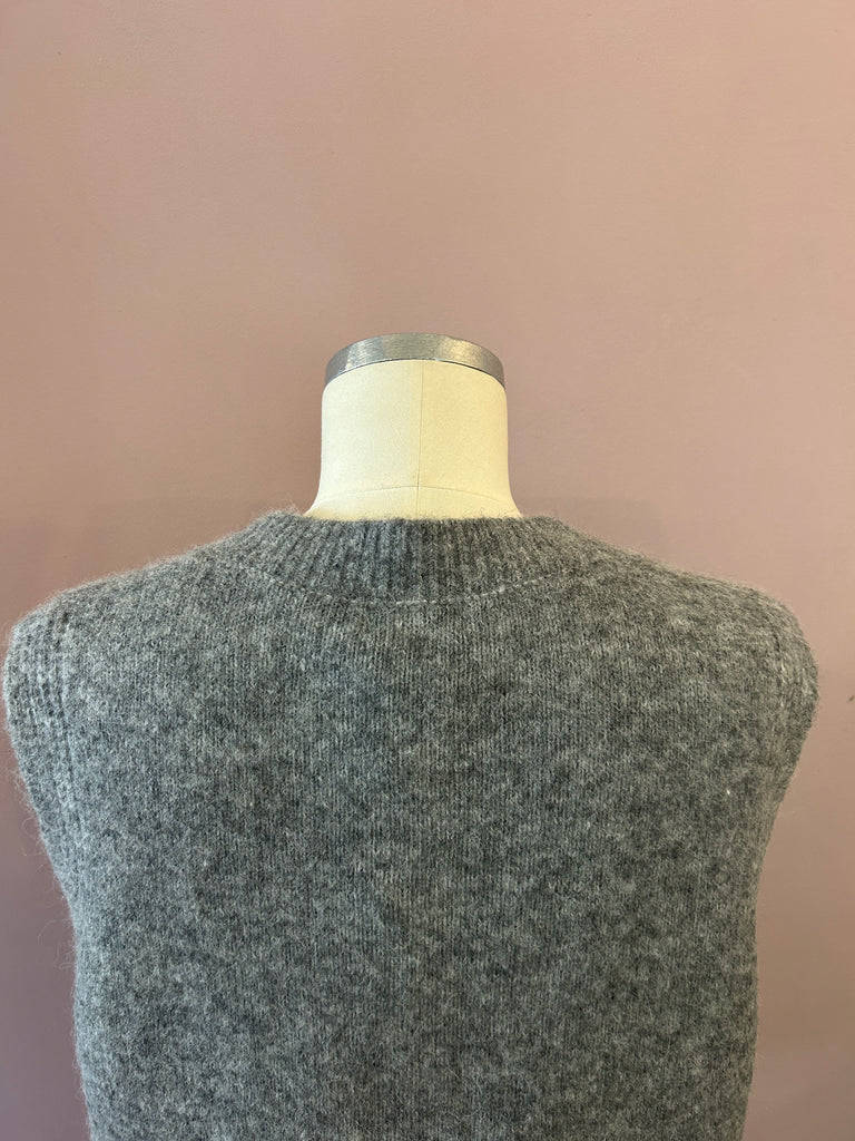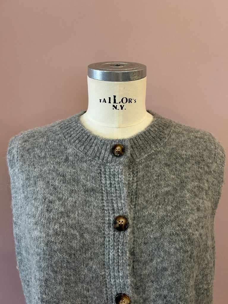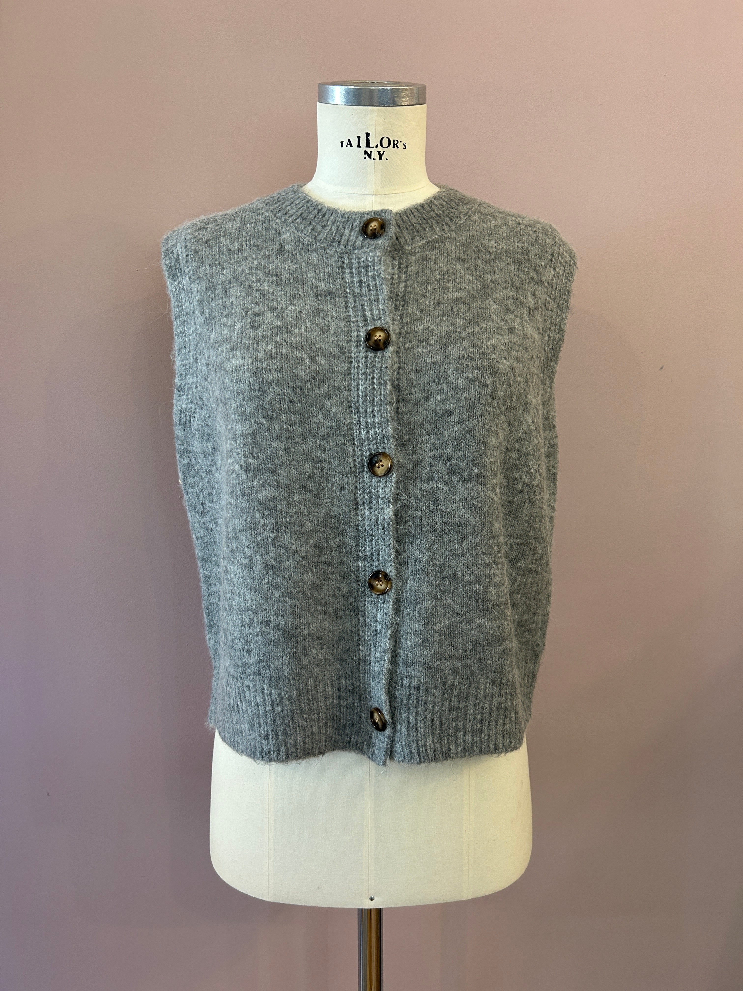 Die durchgeknöpfte Wollweste in Grau-Melange von JcSophie macht Lust auf kältere Tage. Der schöne Woll-Mix mit Alpaca sorgt für Kuschelfeelings. Der Schnitt ist klassisch mit Roundneck und fünf Schließknöpfen in Hornoptik. Schöne Rippstrickdetails an den Abschlüssen runden den Cosy-Look ab.