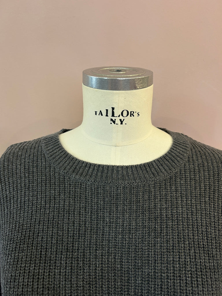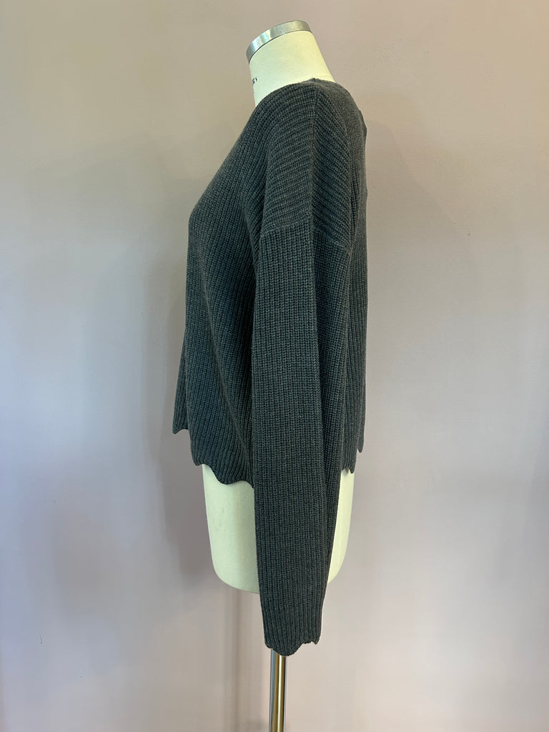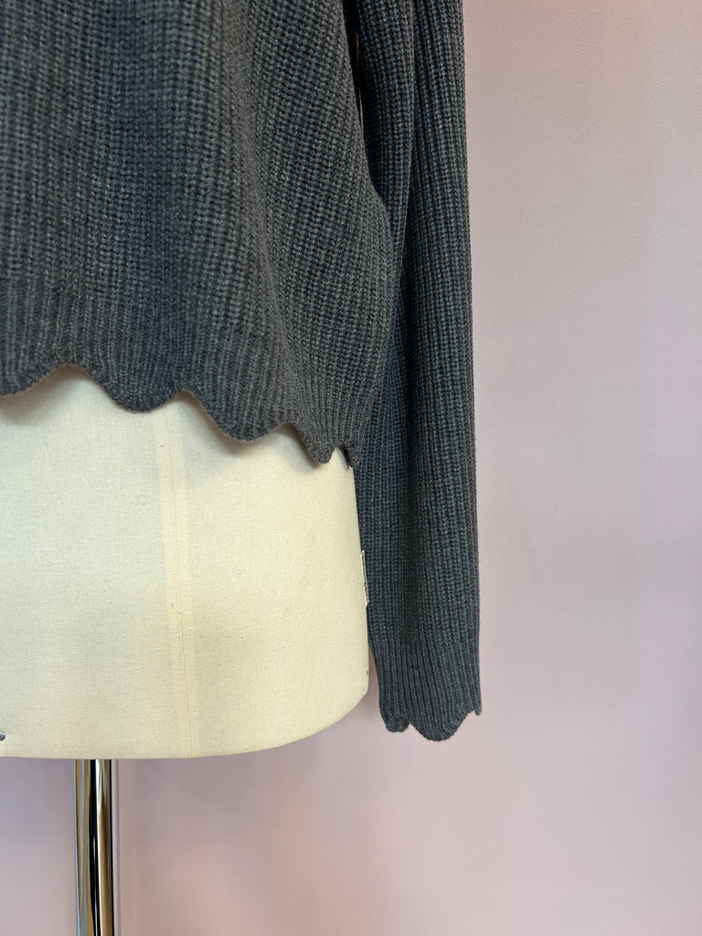 Femininer Strick-Rundhalsspullover mit gewellter Kante in Anthrazit-Melange von iHeart
