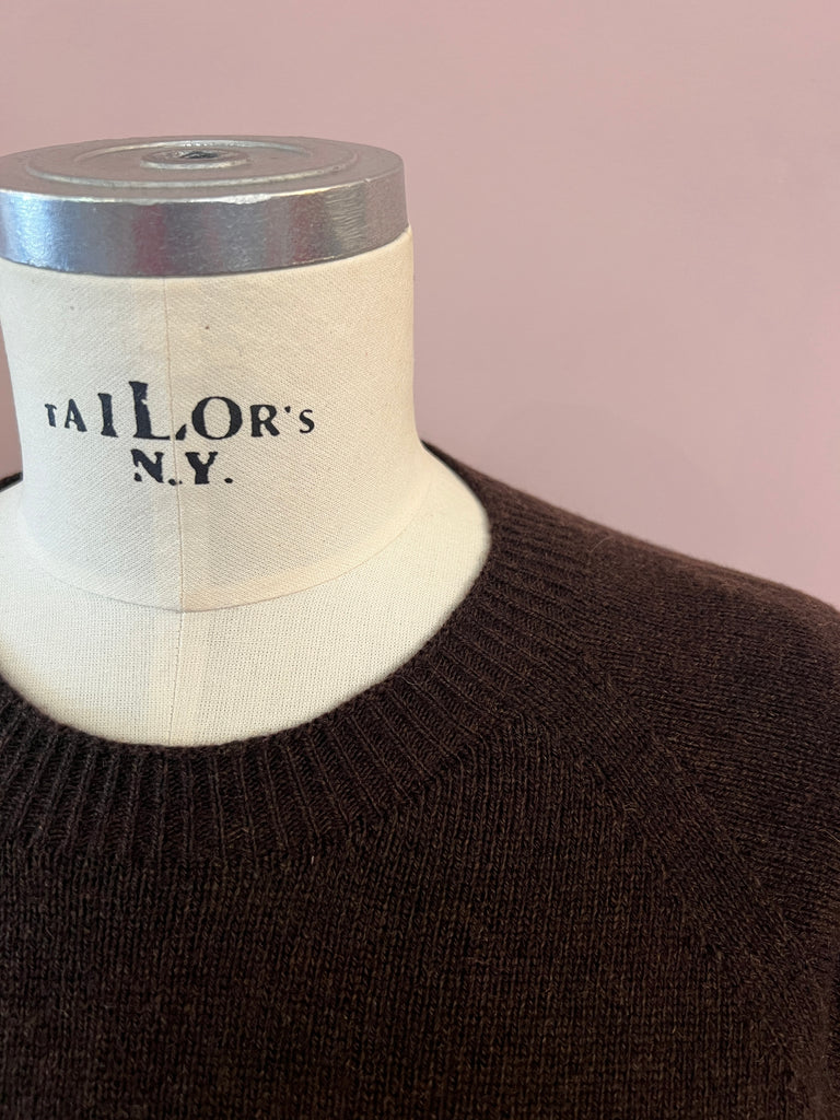 Leichter Glattstrick-Pullover aus Cashmere mit Rundhalsausschnitt in einem warmen Schokobraun-Melange von Jucca. Der locker, aber nicht weit geschnittene Pullover überzeugt mit dezent eingesetzten Raglanärmeln und Rippstrickdetails an den Abschlüssen. Ein langlebiger Begleiter für Herbst und Winter.