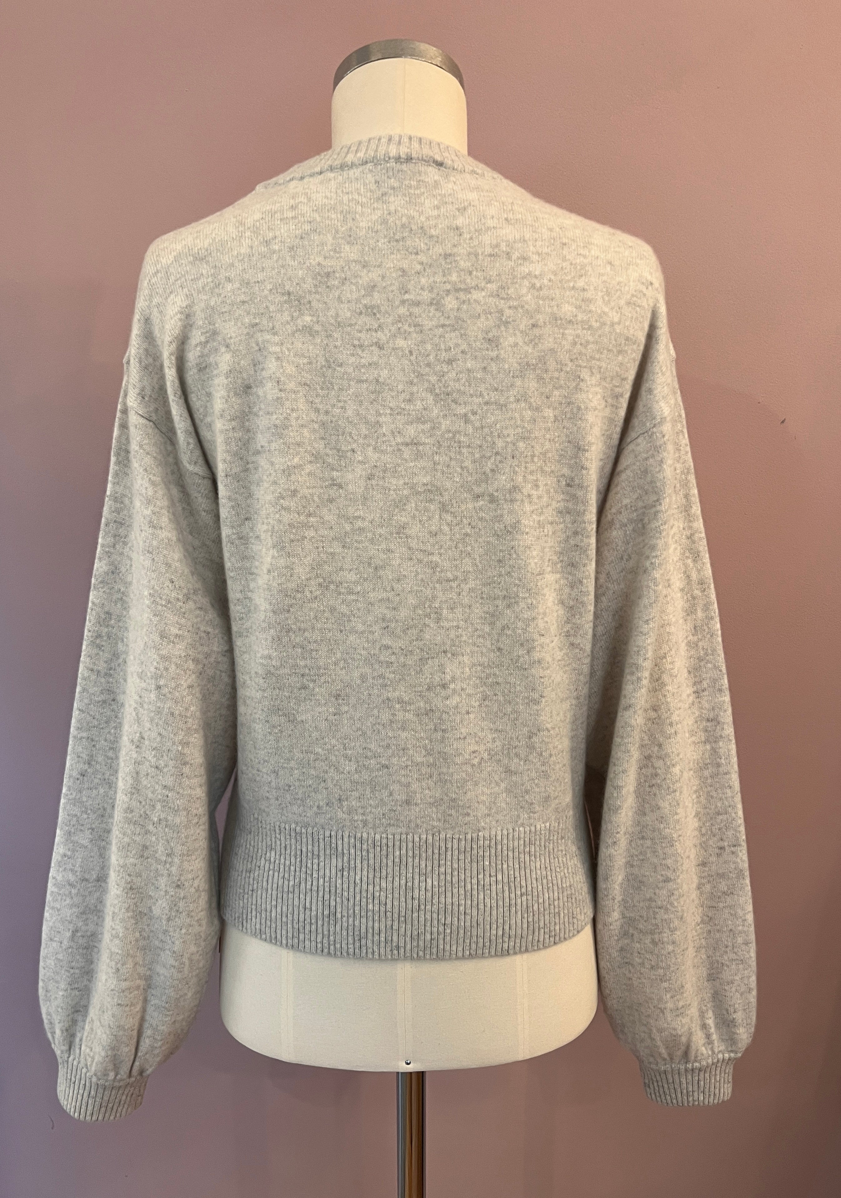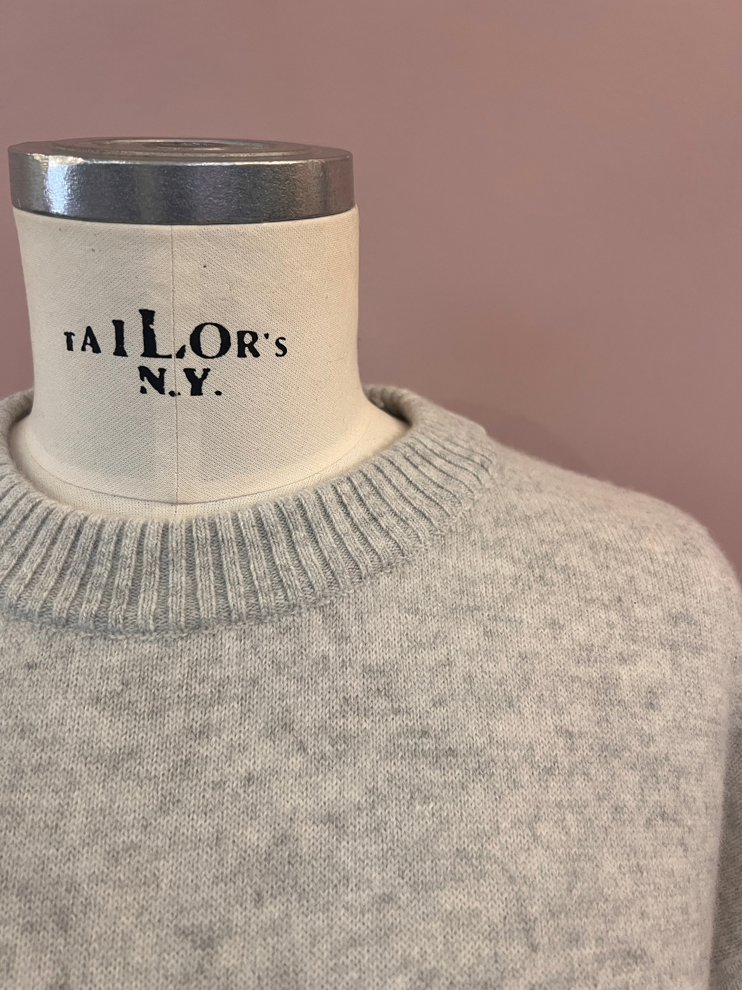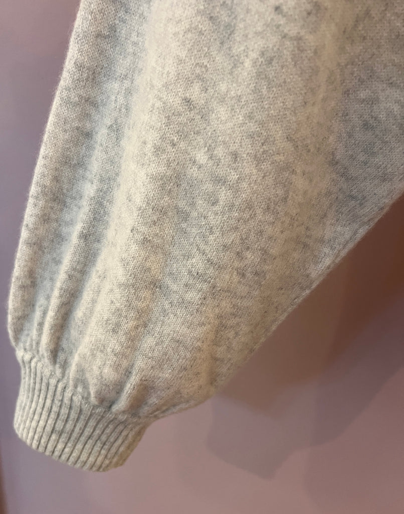 Kuschelpullover mit Signature-Strick in Silbergrau-Melange von SoSUE. Mit überschnittenen Schultern, feinem Crew-Neck-Ausschnitt und breiten Rippstrickdetails an den Abschlüssen. Die Arme sind weit geschnitten und an den Bündchen leicht gerafft. Das sorgt für einen bezaubernden, femininen Look, der von dem eingestrickten So-SUE-Schriftzug noch unterstrichen wird. Die weiche Merinowolle sorgt für ein angenehmes Tragegefühl. Schöööööön.... !