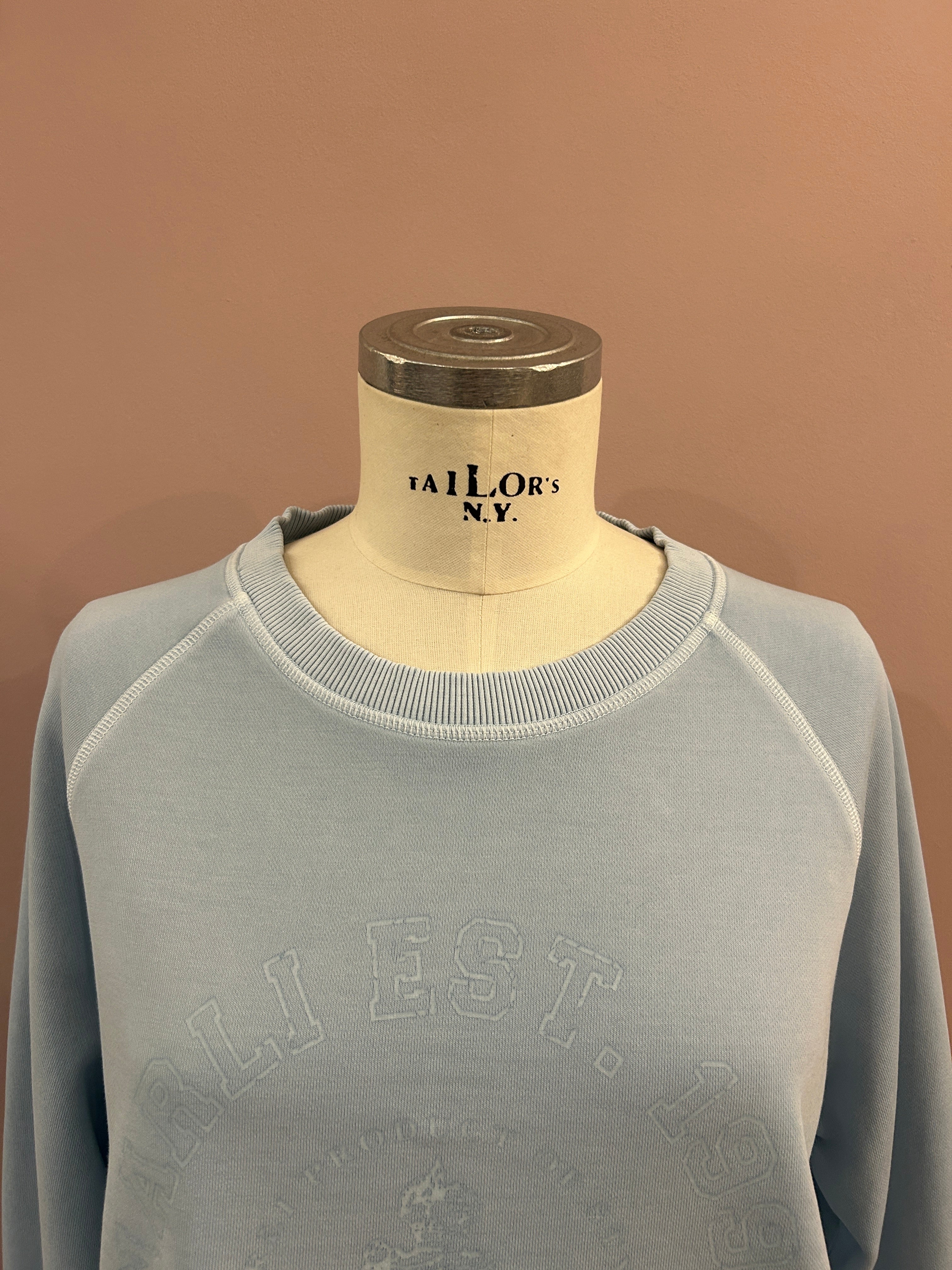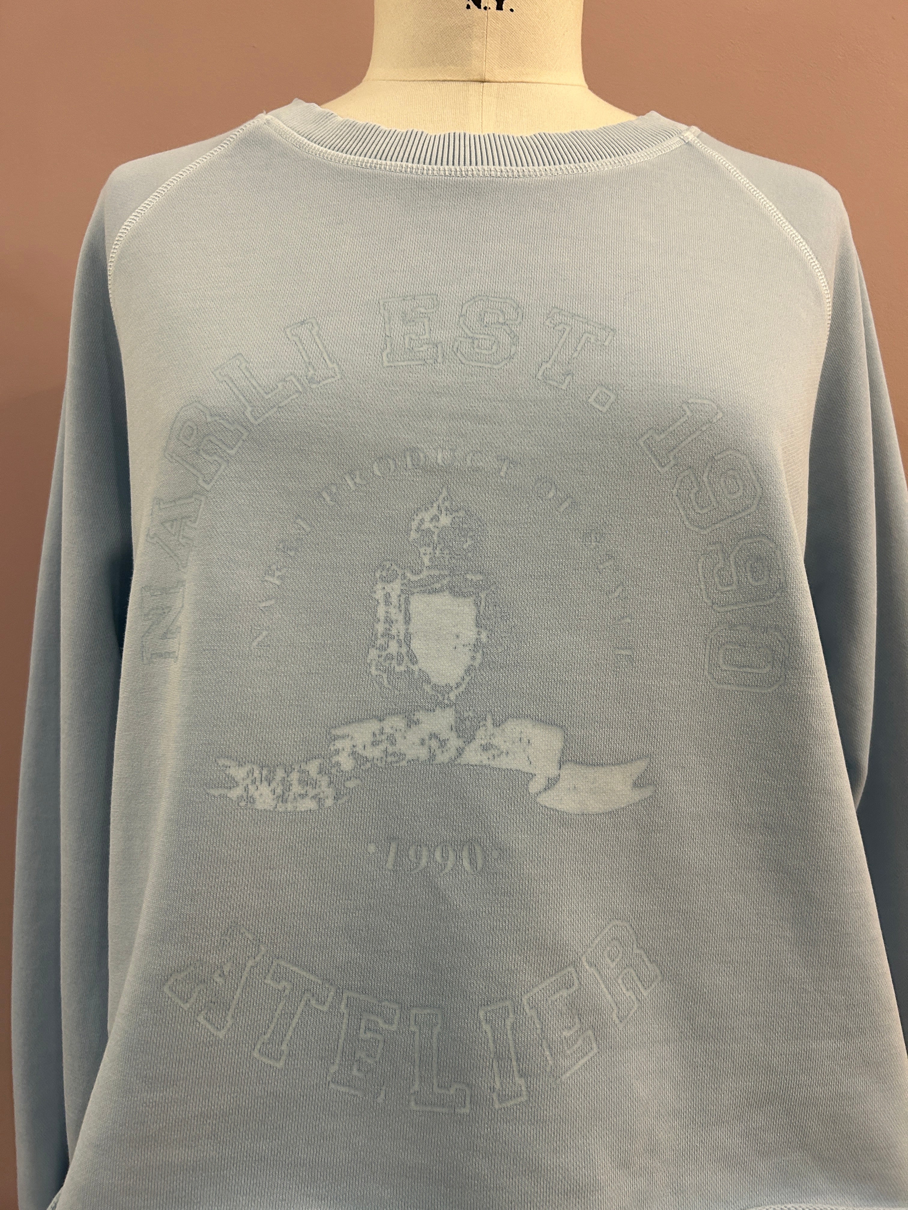 Must-Have-Sweatshirt in Himmelblau mit tonalem "Atelier Narli Est. 1990" Negativdruck. Das Sweatshirt wirkt dank Rollsaum und lockerem Schnitt lässig. Zarte Rippbündchen zieren Ausschnitt und Armabschluss.