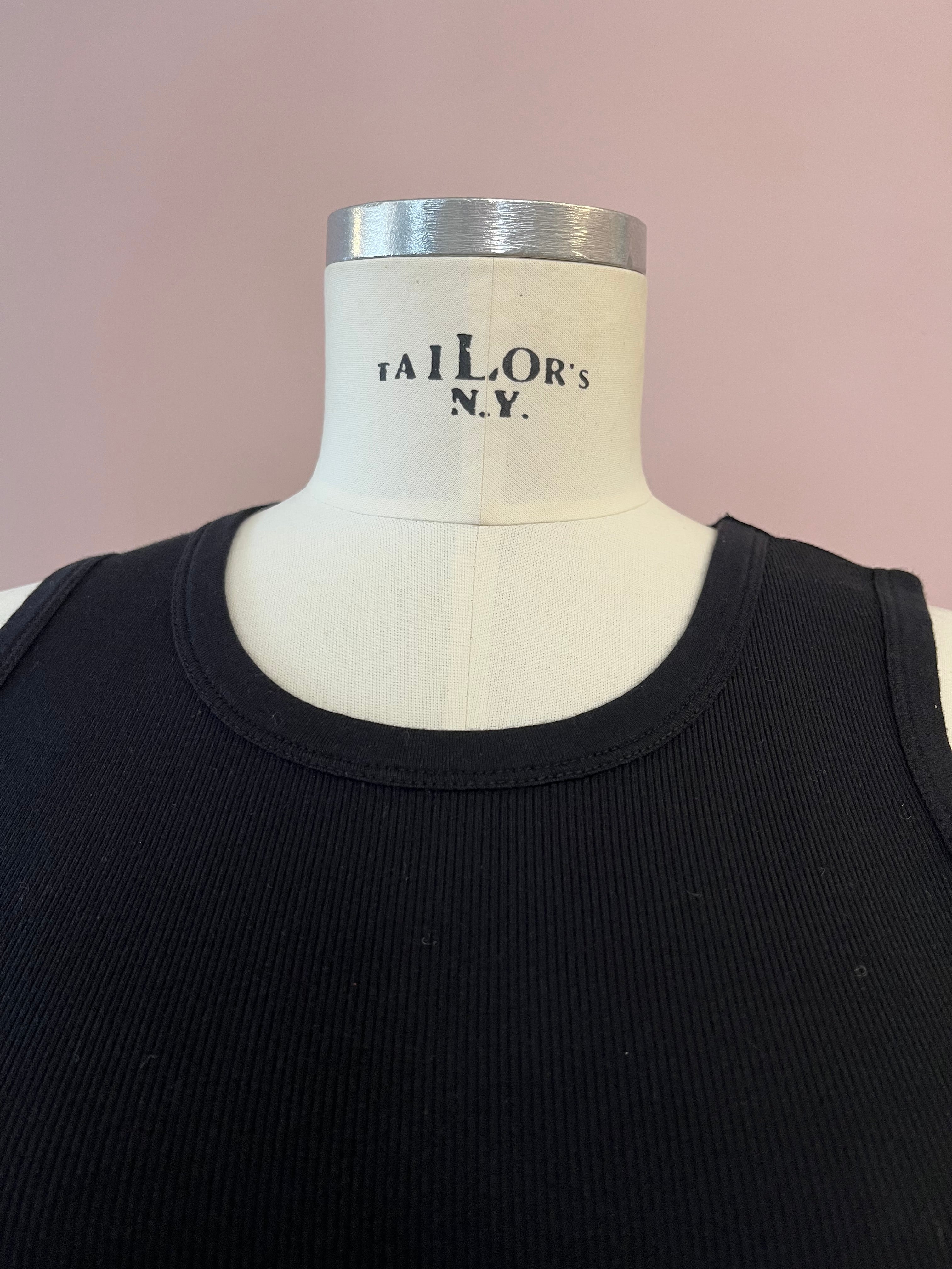 Ein schwarzes Tank-Top und dann noch mit feiner Ripp-Struktur!