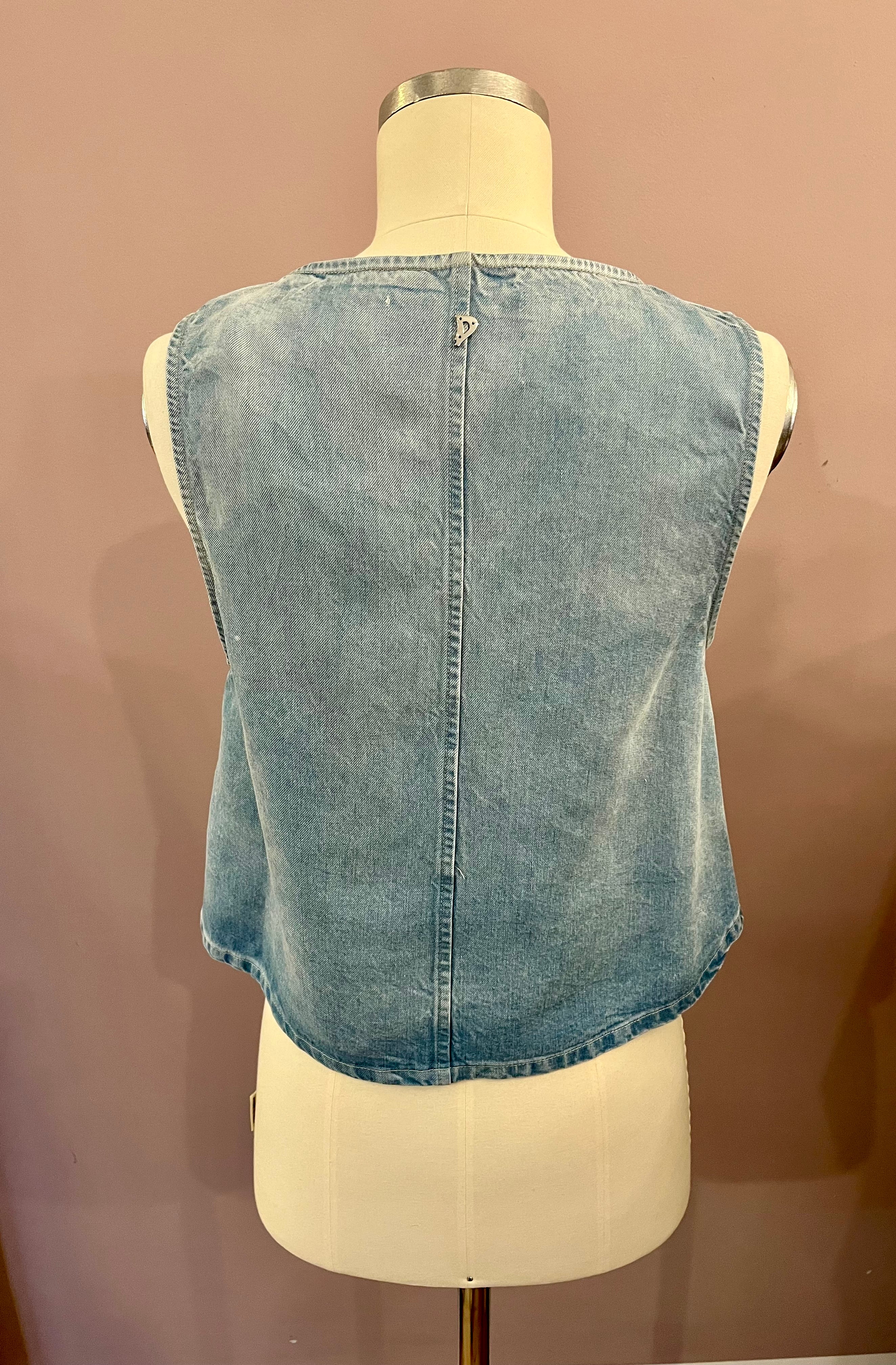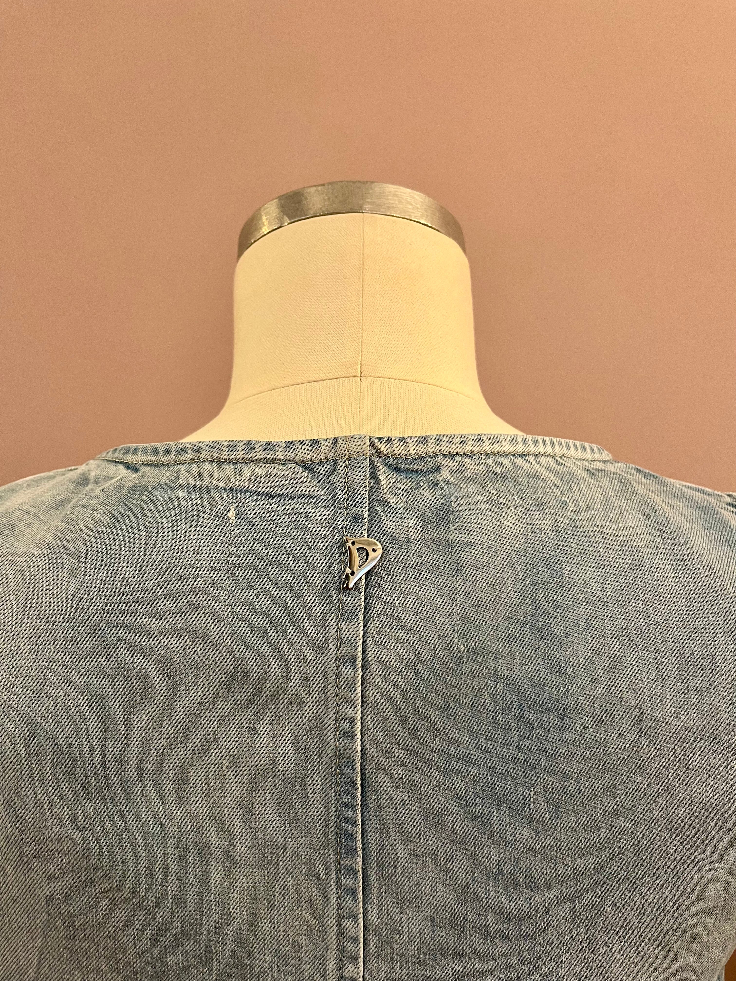 Denim-Top von Dondup mit klarer, zugleich femininer Linienführung. Der großzuügige Rundhalsausschnitt und der gerade geschnittene Rücken sorgen für eine ruhige, reduzierte Optik, während die leicht glockig verlaufende Vorderseite dem Modell eine besondere, fließende Form verleiht.
